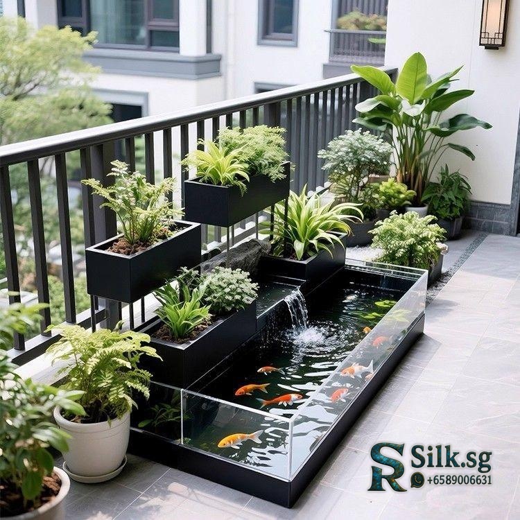 Transform your balcony or courtyard with this elegant stainless steel fish tank planter. Its integrated design creates a serene water feature, perfect for relaxing with freshwater fish and aquatic plants. Customize your own unique centerpiece to bring peaceful, natural beauty to your outdoor space.
