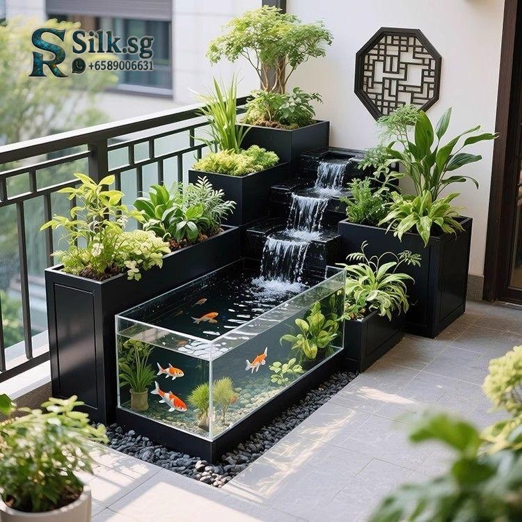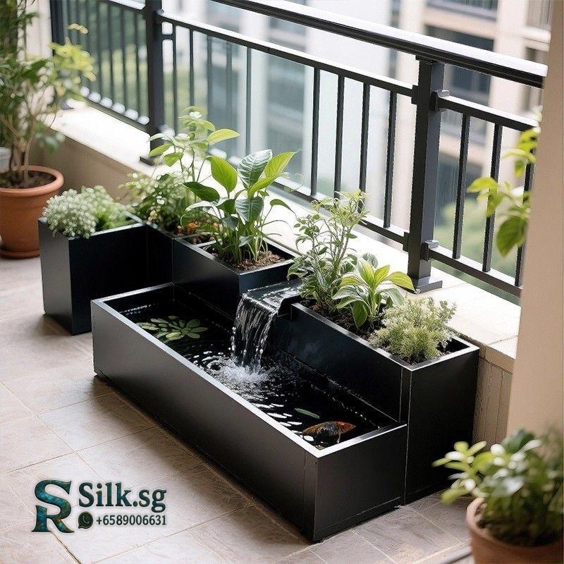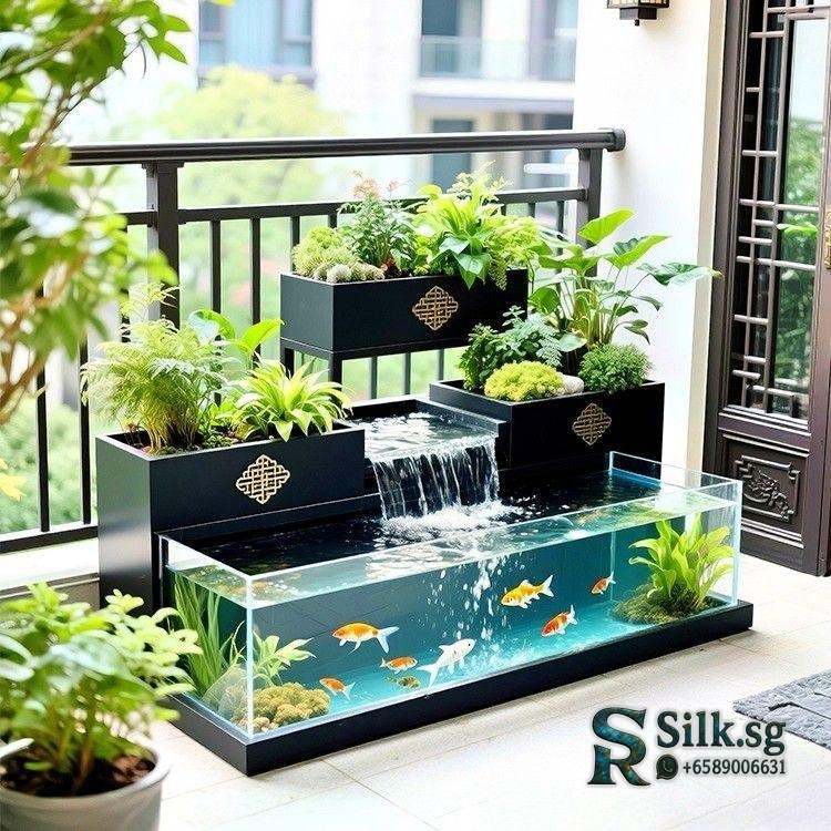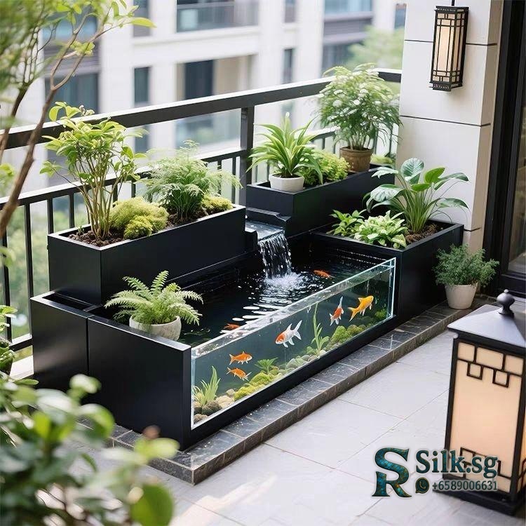 Balcony Flowing Water Fish Tank Planter Box – Metal Floor Standing Acr