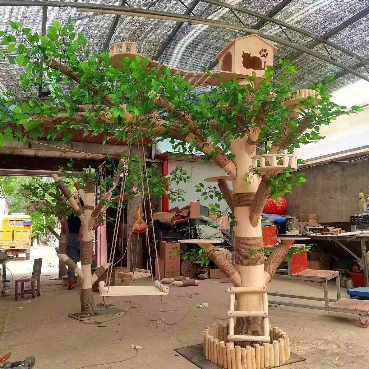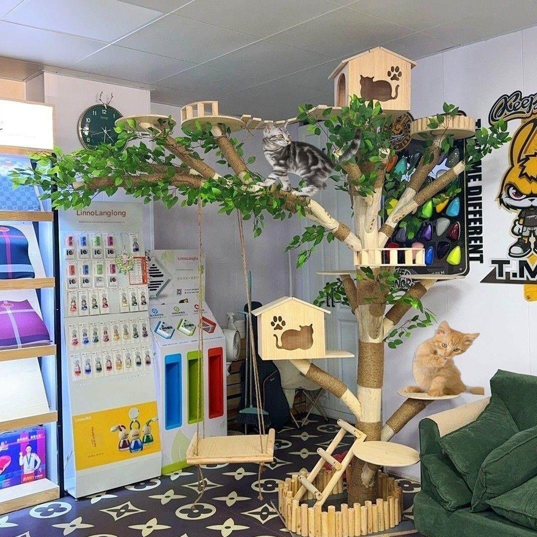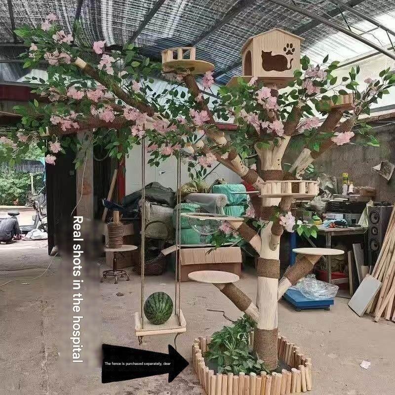 Solid Wood Cat Tree – Solid Wood Cat Tree Cat Tree with Cat Bed Integrated Large Space Capsu