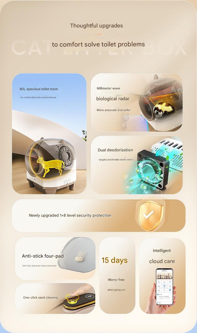 Experience hassle-free feline care with the Meow Director Fully Automatic Cat Litter Box. Designed for multi-cat households, it offers odor control, auto-scooping convenience, and a spacious, enclosed design. Perfect for busy cat lovers seeking a clean, stress-free solution.