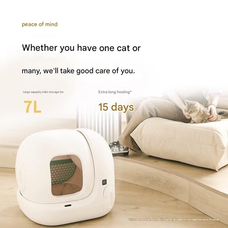 Enjoy a cleaner home with this smart cat litter box that automatically controls odors and is easy to maintain. Perfect for busy cat owners, its semi-enclosed design offers privacy while keeping your space fresh. Discover the ultimate convenience for you and your feline friend.