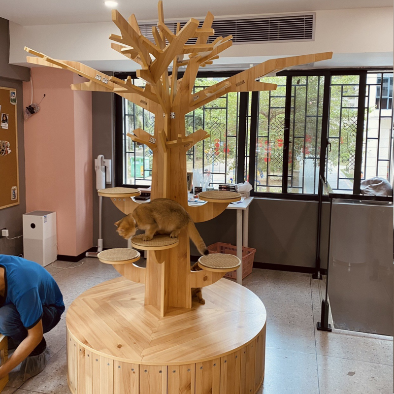 Give your cats a stylish playground with this solid wood cat climbing frame. Its durable sisal scratching posts and spacious platforms provide endless fun and exercise, perfect for multi-cat households. Create a happy, active space your feline friends will adore.