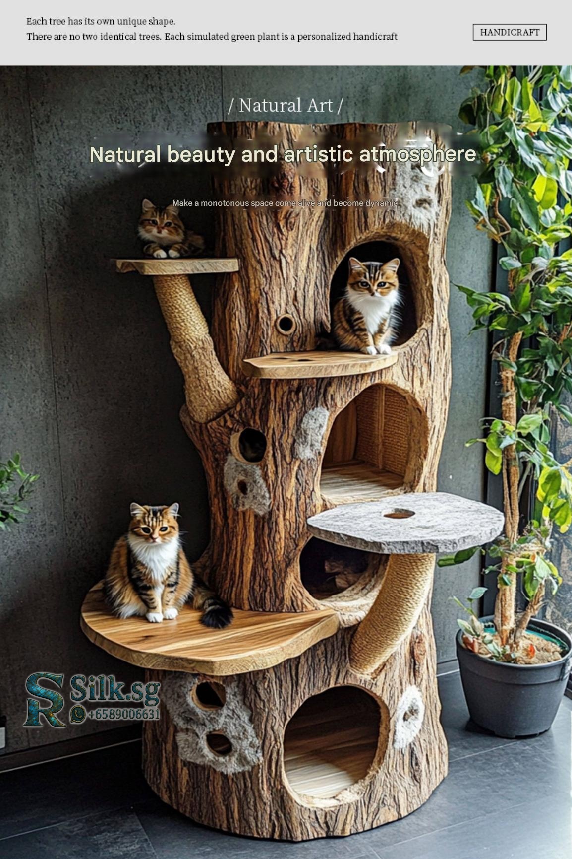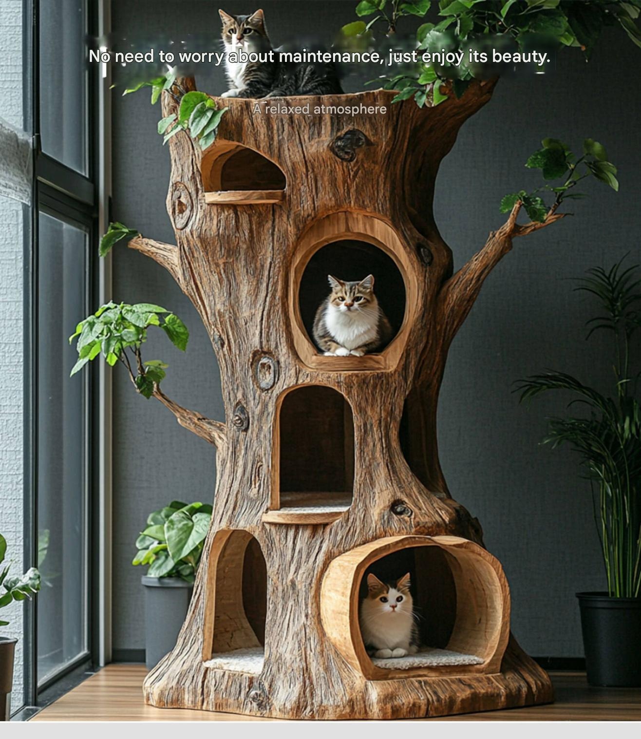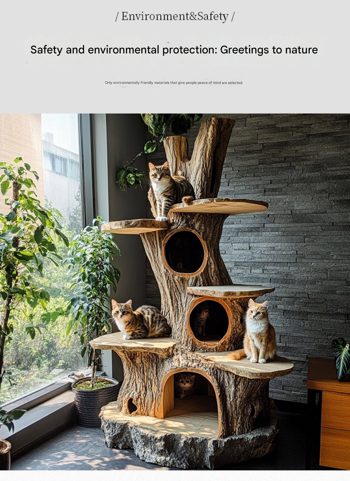 Create a cozy, stylish space for your adult cat to climb, scratch, and relax with this forest-inspired indoor cat tree. Its natural design elevates your homes decor while providing fun and comfort. Perfect for cat lovers wanting to enrich their pets environment and add charm to their space.
