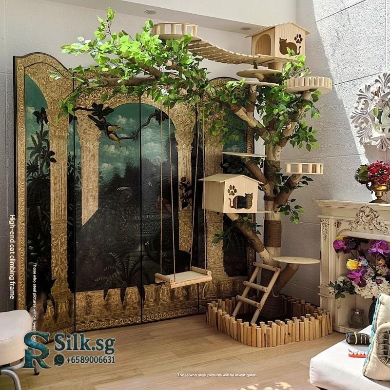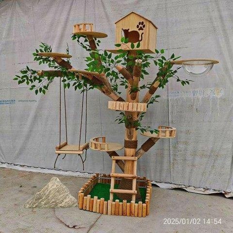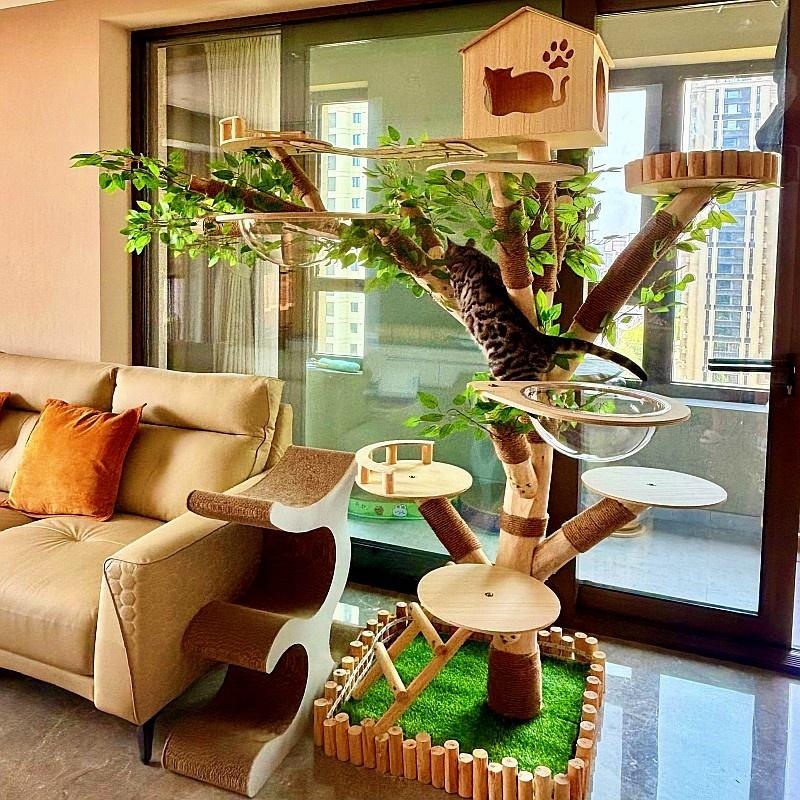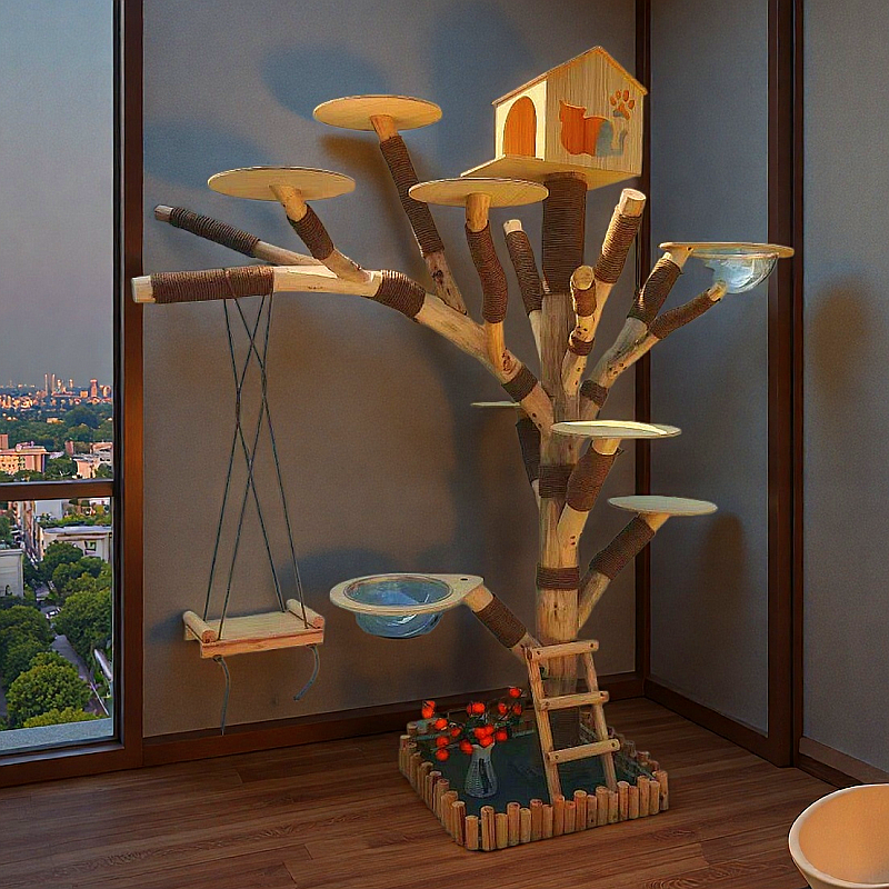 This durable cat tree offers a cozy bed, engaging toy, and sturdy scratching post all in one. Perfect for multi-cat households, its solid wood frame safely supports large breeds. Give your feline friends their own adventure-filled retreat that’s built to last.