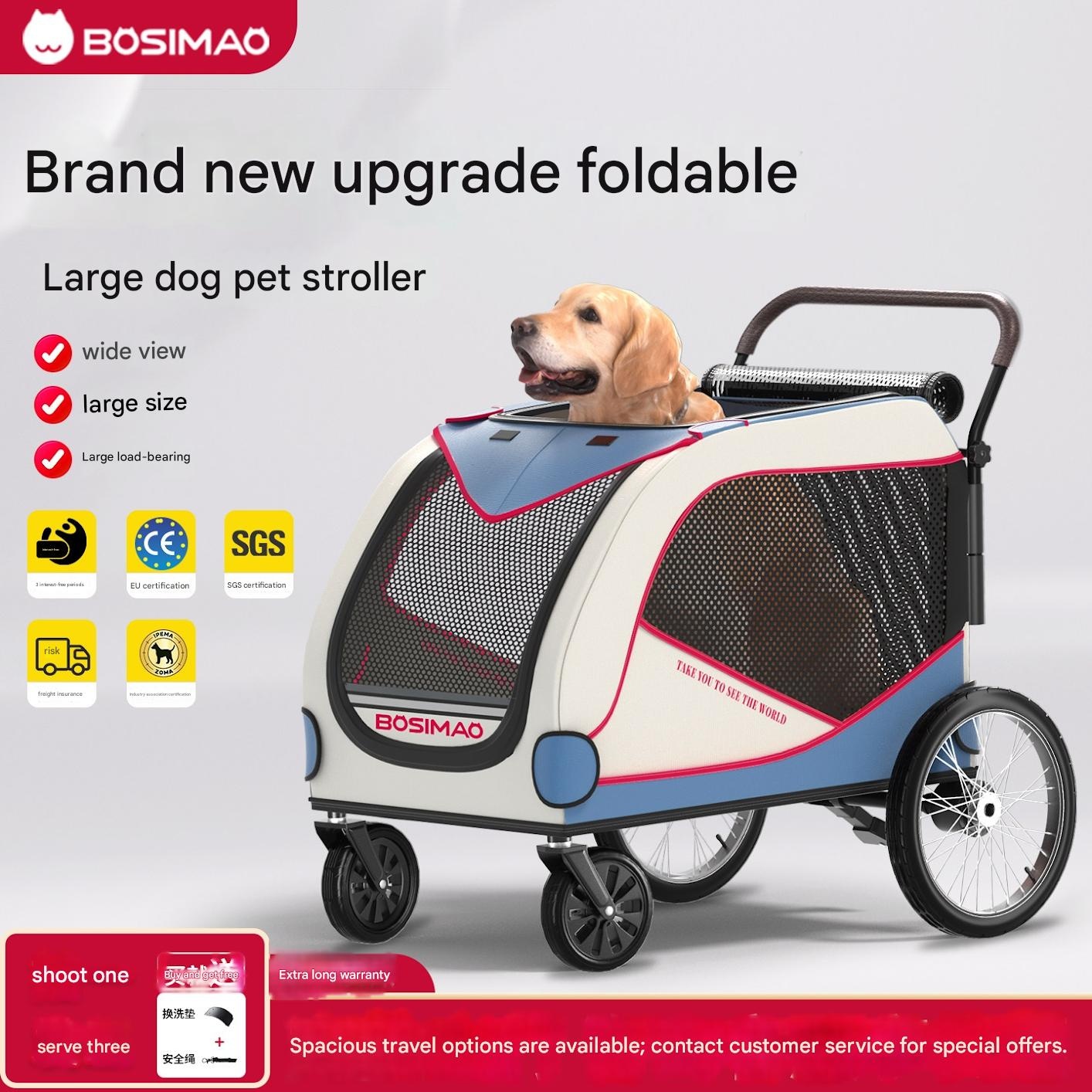 BOSIMAO – Foldable Large Dog Stroller for Elderly Pets, Portable Walki
