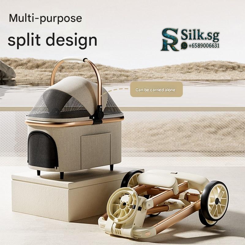 Enjoy effortless walks with your furry friend in this portable pet stroller. Its foldable, detachable design makes travel and storage a breeze, perfect for urban adventurers or vet visits. Give your pet a safe, comfortable ride theyll love.