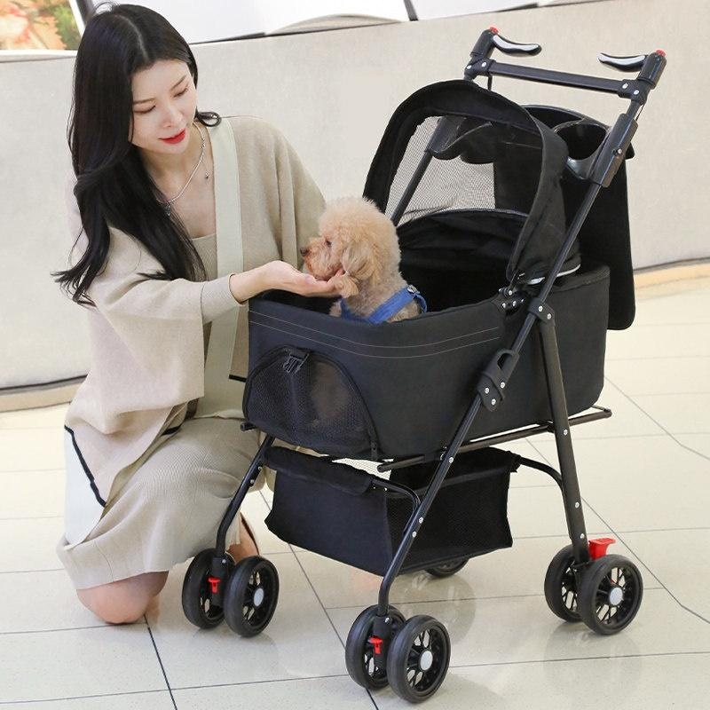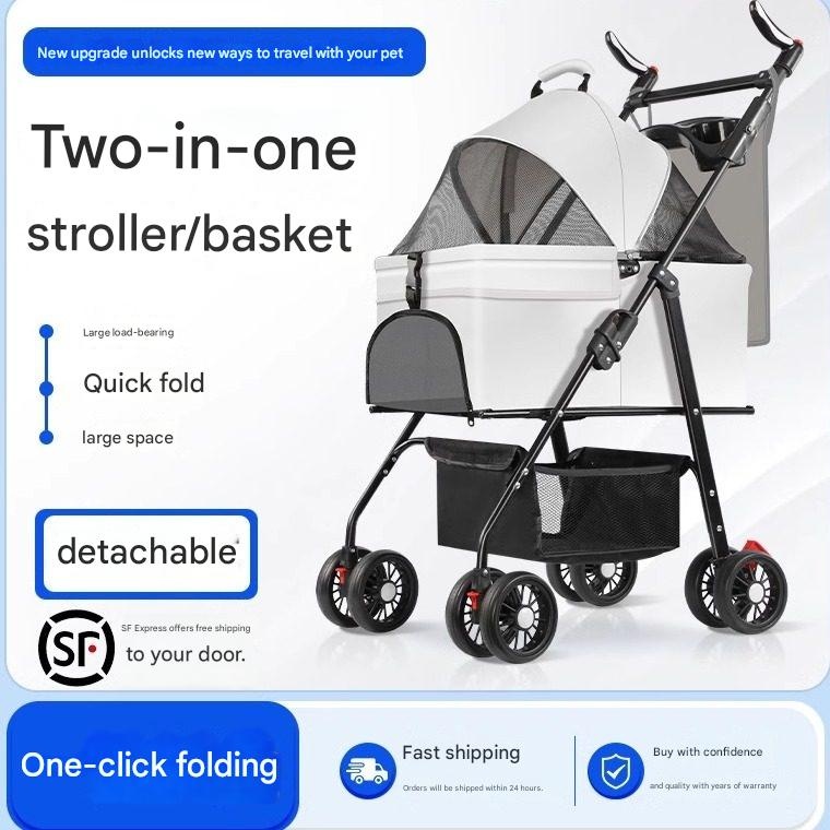 Take your furry friend on comfortable, secure adventures with this lightweight and foldable pet stroller. Its easy one-click folding and detachable carrier make travel a breeze. Perfect for active pet owners, it offers a safe, relaxing ride for your dog or cat. Discover stress-free outings together.