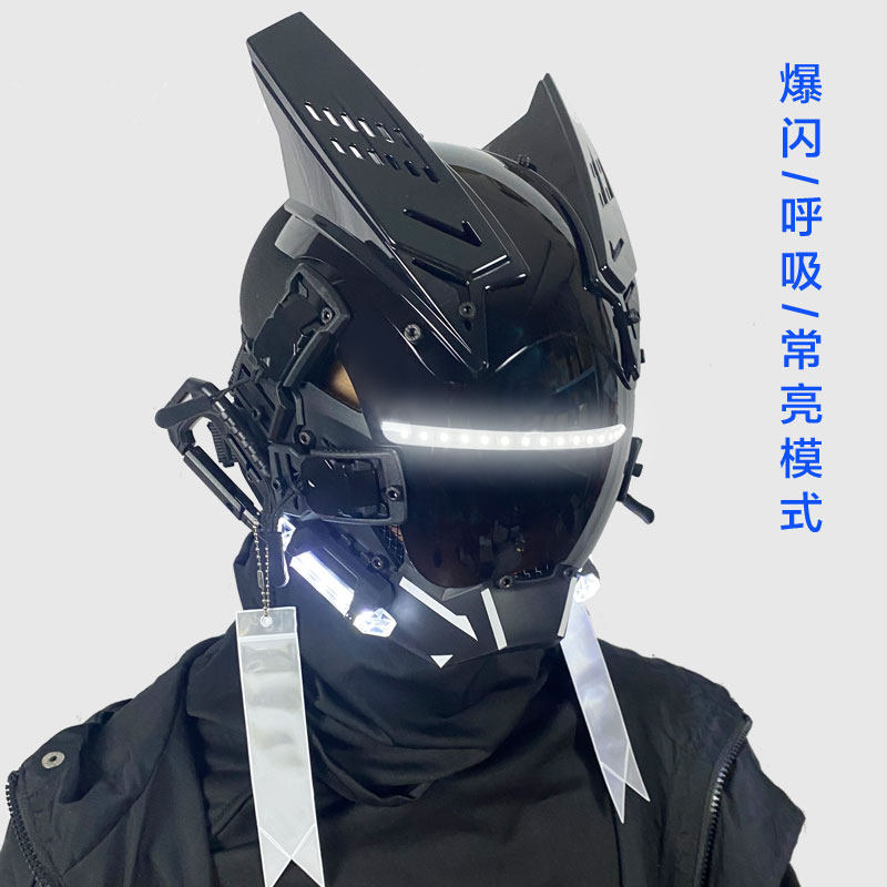 Cyberpunk Helmet Mas – Cyberpunk Helmet Mask Iron Blood Warrior Cosplay Male Mecha Glowing Fu