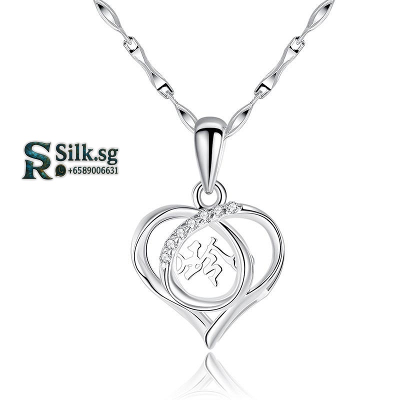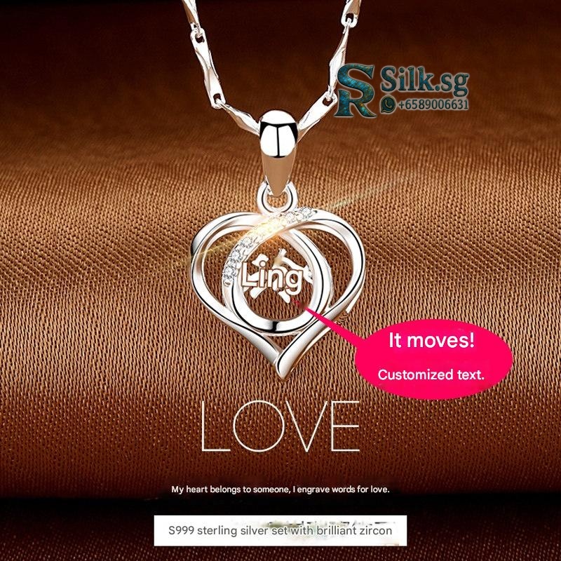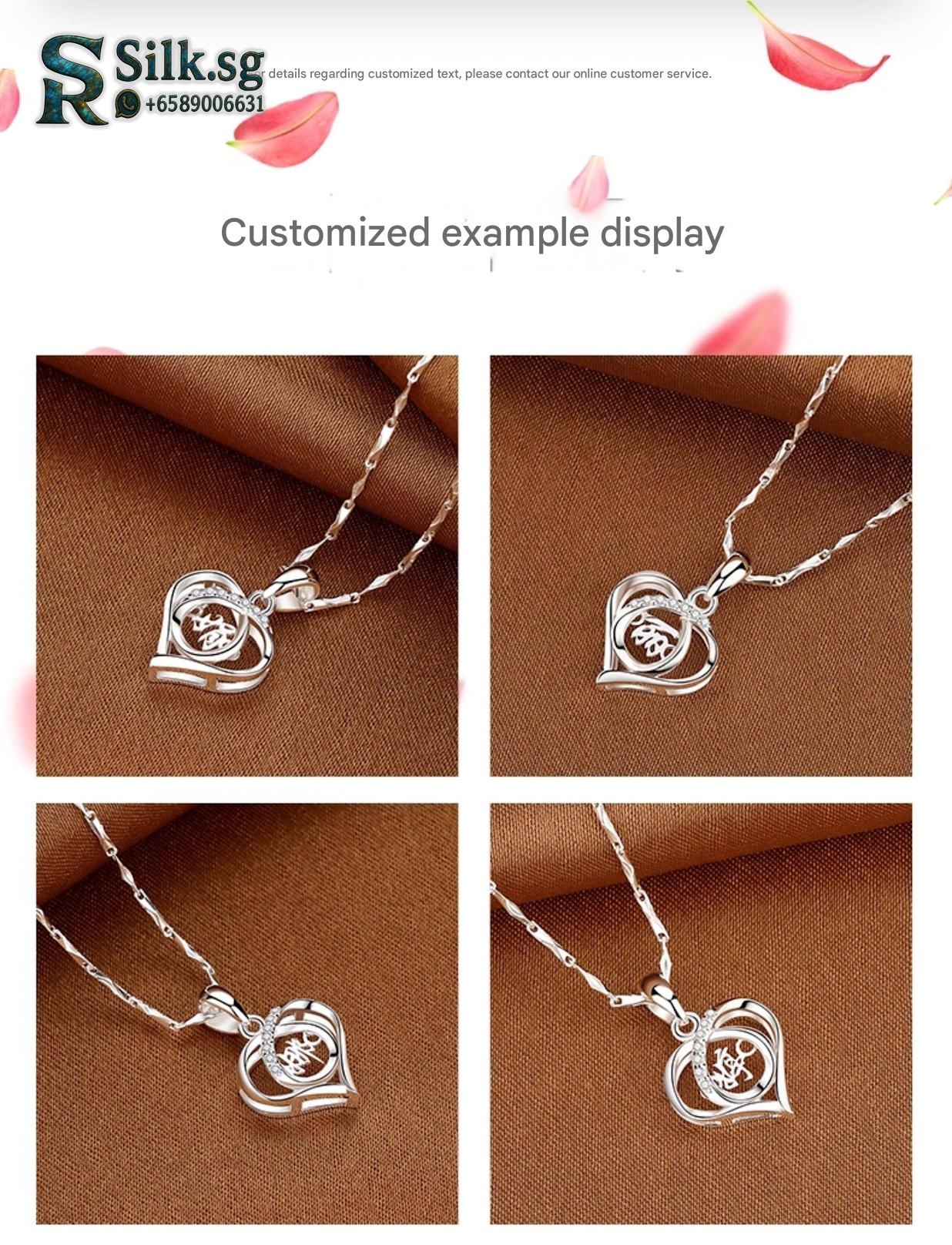 Bihong – 999 Pure Silver Custom Engraved Heart Necklace Gift for Her