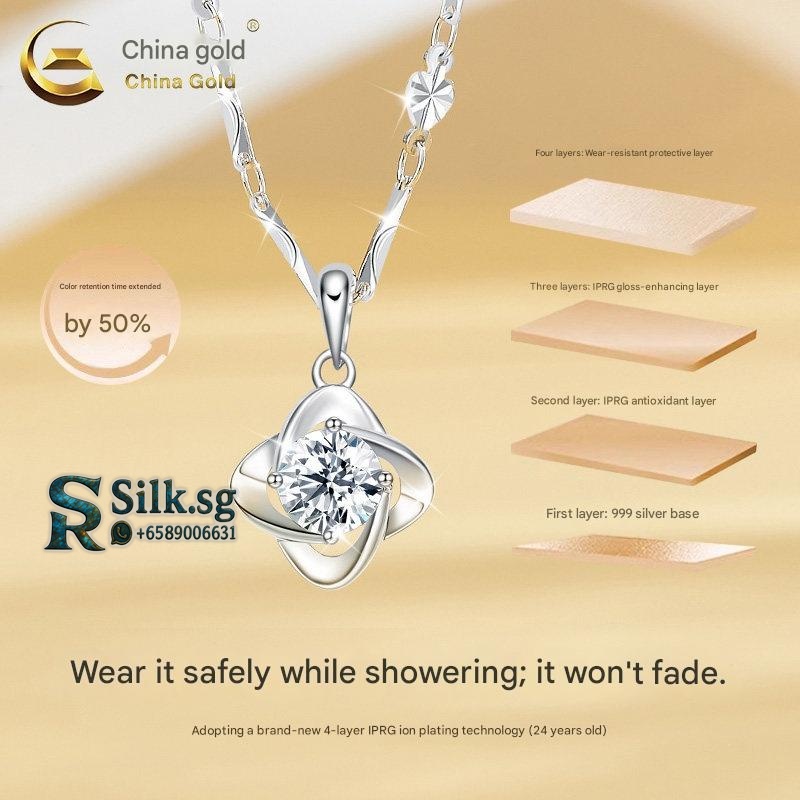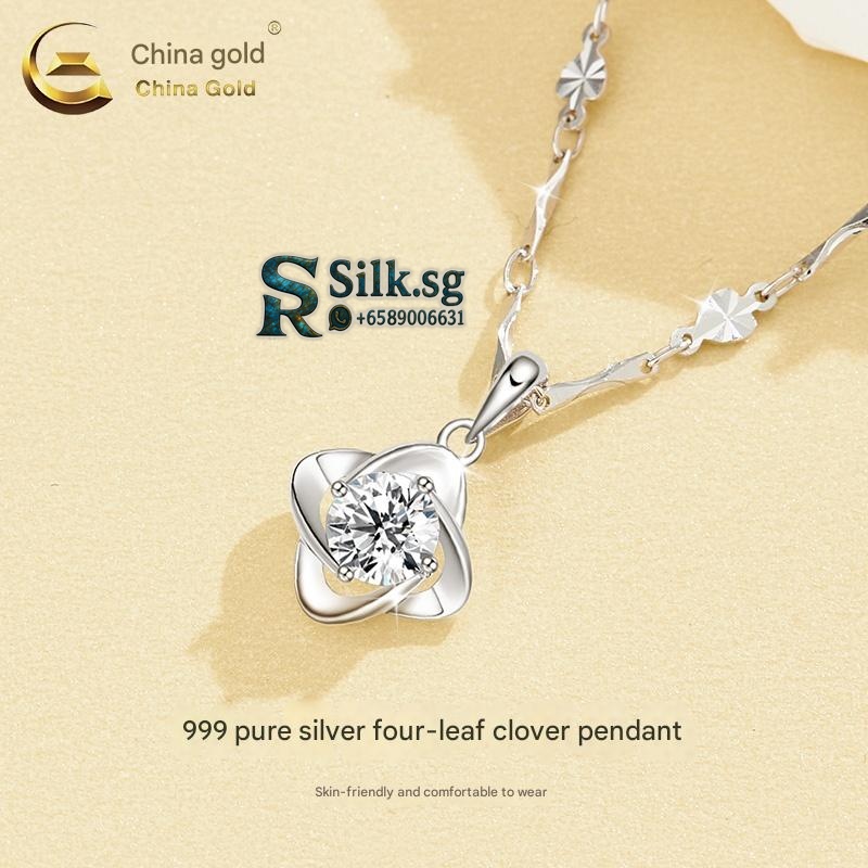 China Gold – Pure Silver Four – Leaf Clover Necklace for Women, Luxury