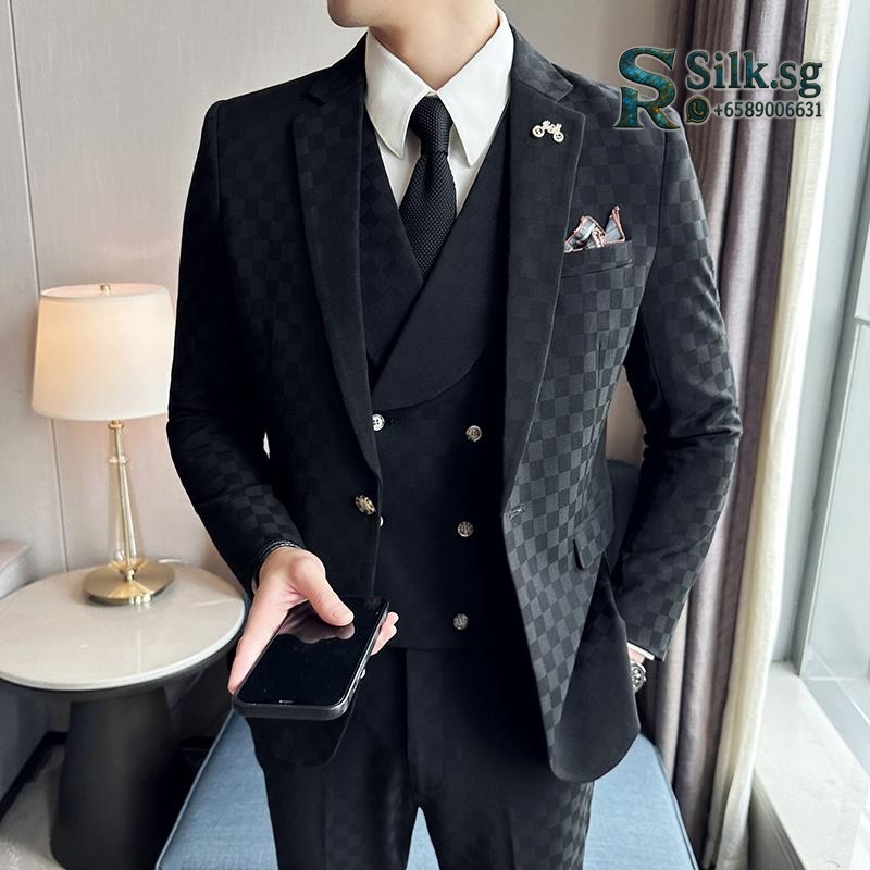 Be the first to review “Hanfanxi – Men’s Slim Fit Check Blazer Suit Set with Vest & Trousers,” Cancel reply