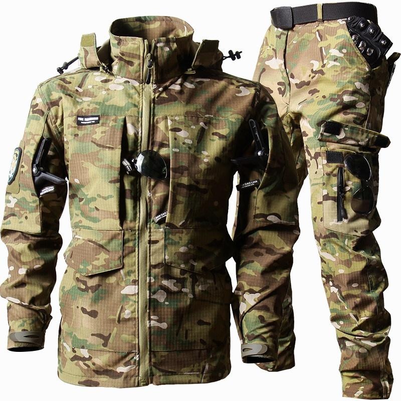 TacticalPro – Windproof Camouflage Outdoor Jacket Set with Hood & Mult