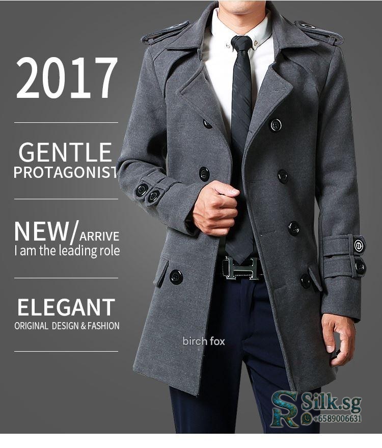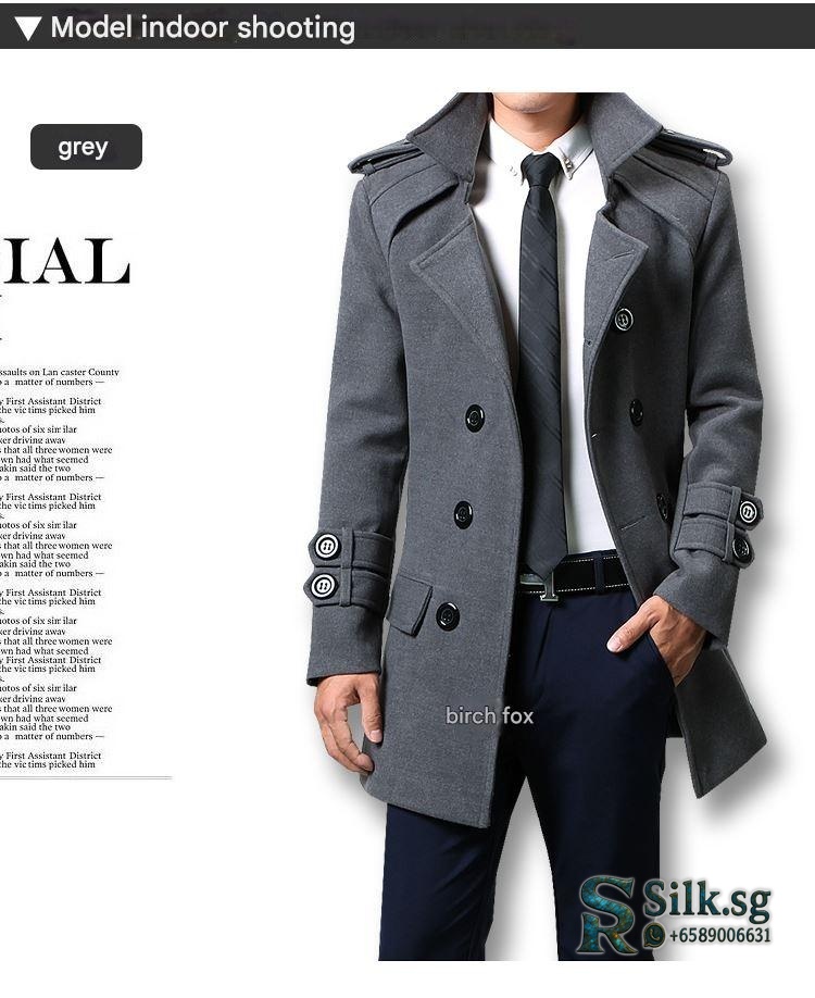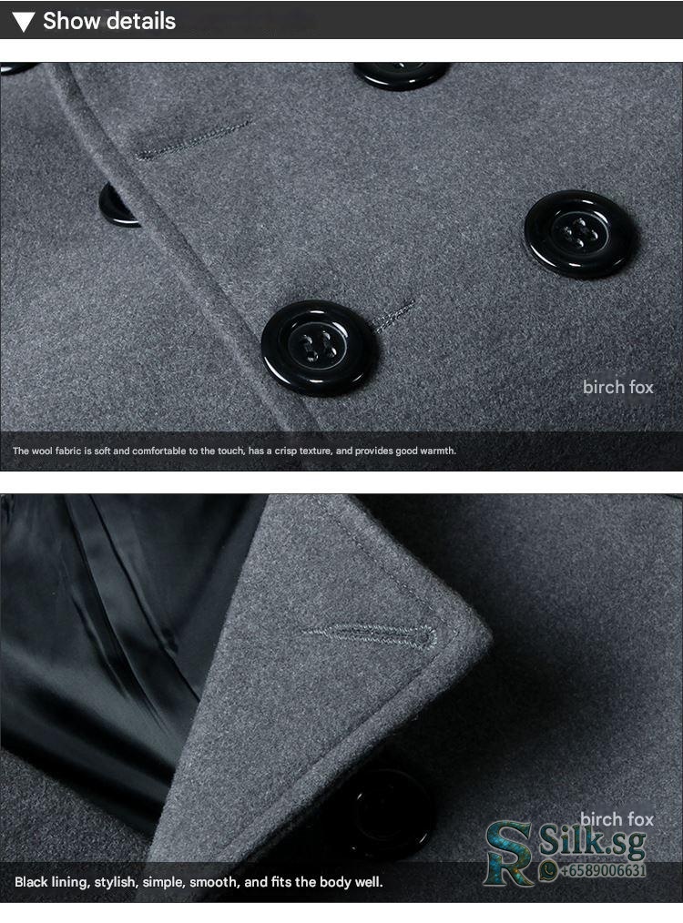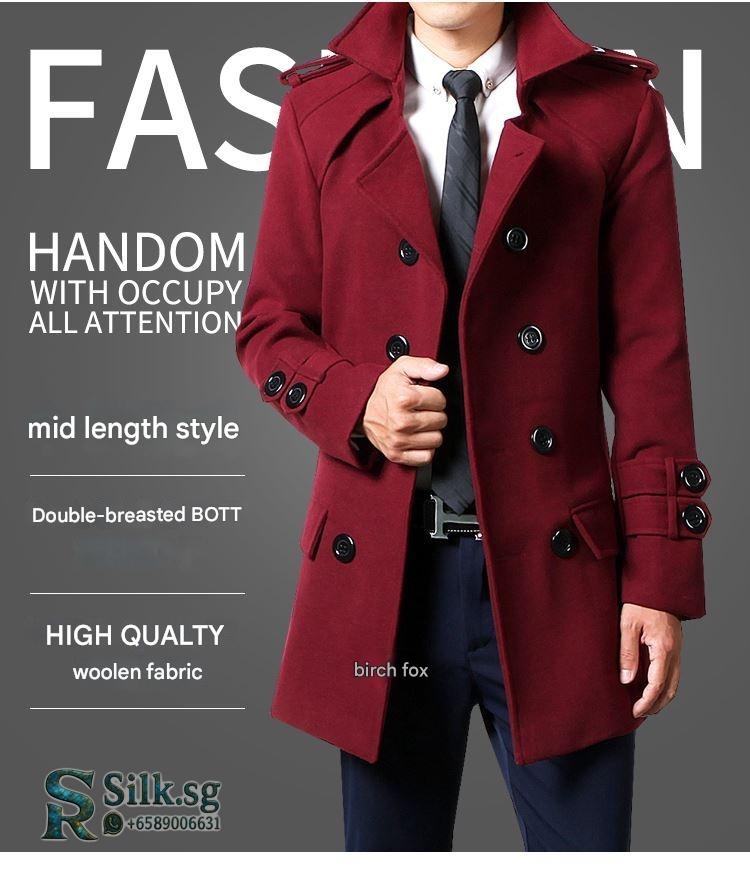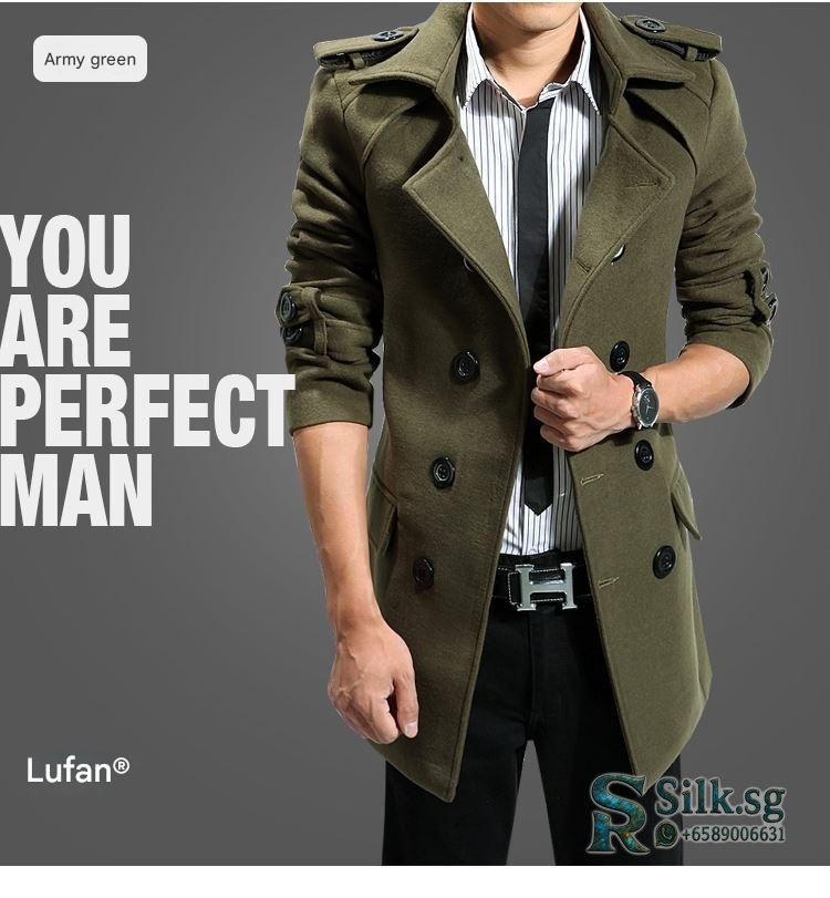 Men’s Winter Wool Co – Men’s Winter Wool Coat Mid-Length Autumn Double-Breasted Youth Style T