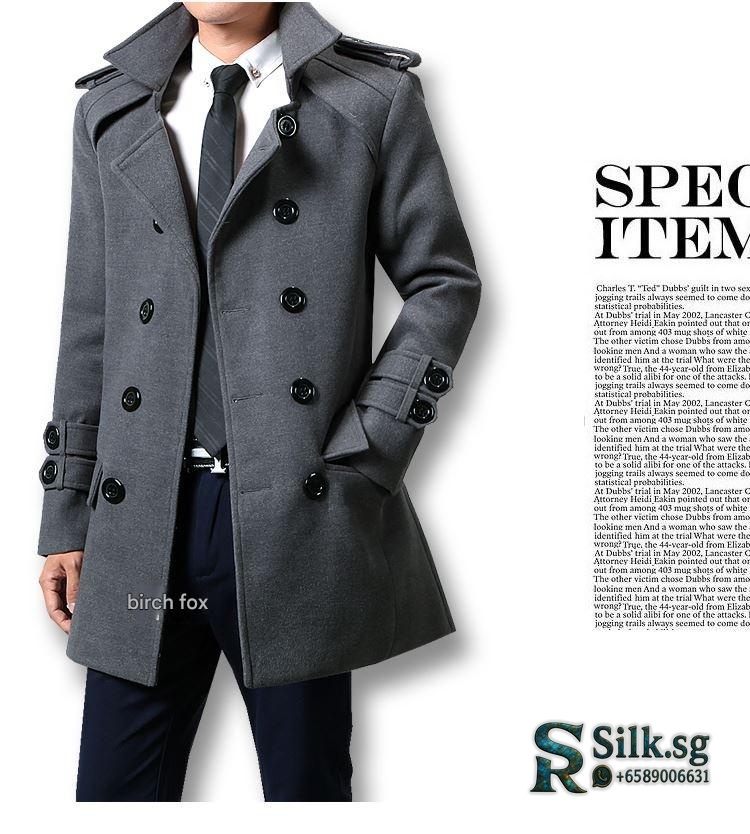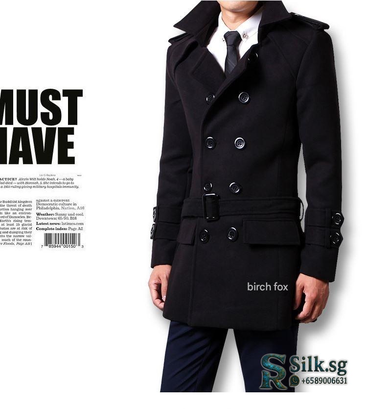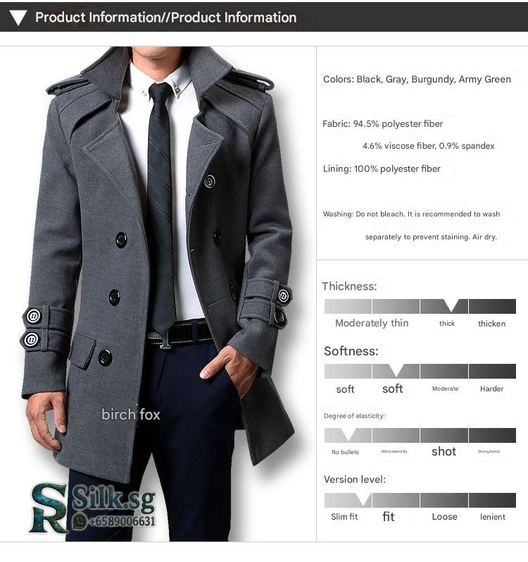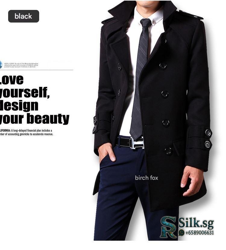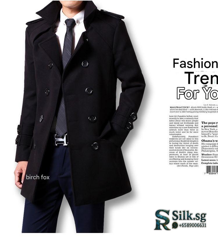 Men’s Winter Wool Co – Men’s Winter Wool Coat Mid-Length Autumn Double-Breasted Youth Style T