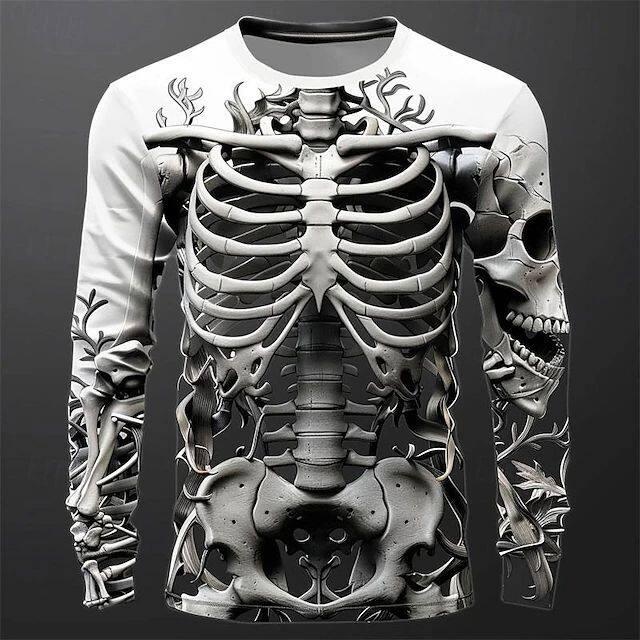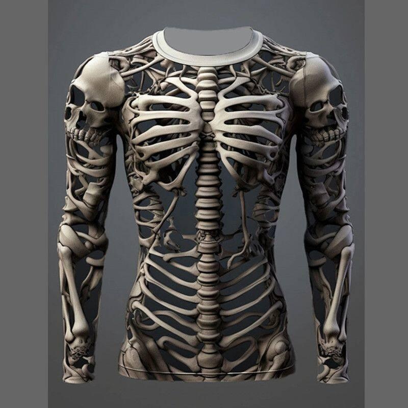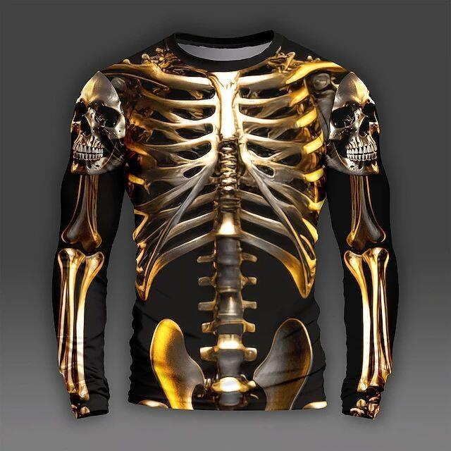 Skeleton Muscle 3D Print Shirt – Men’s Trendy Long Sleeve Graphic Tee