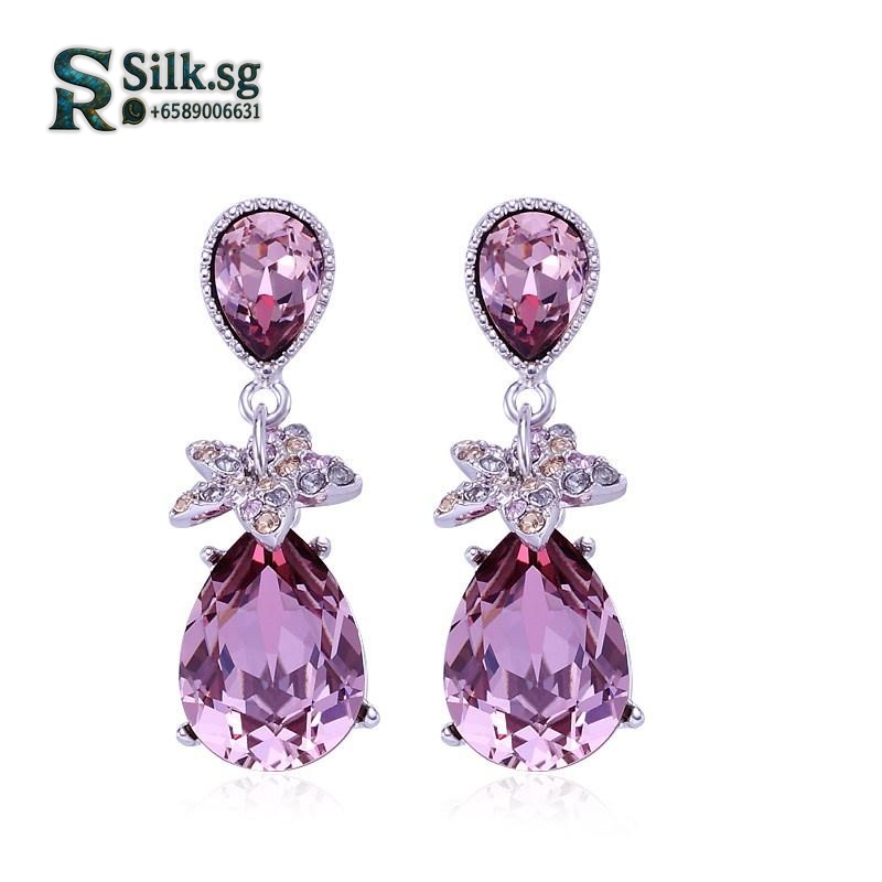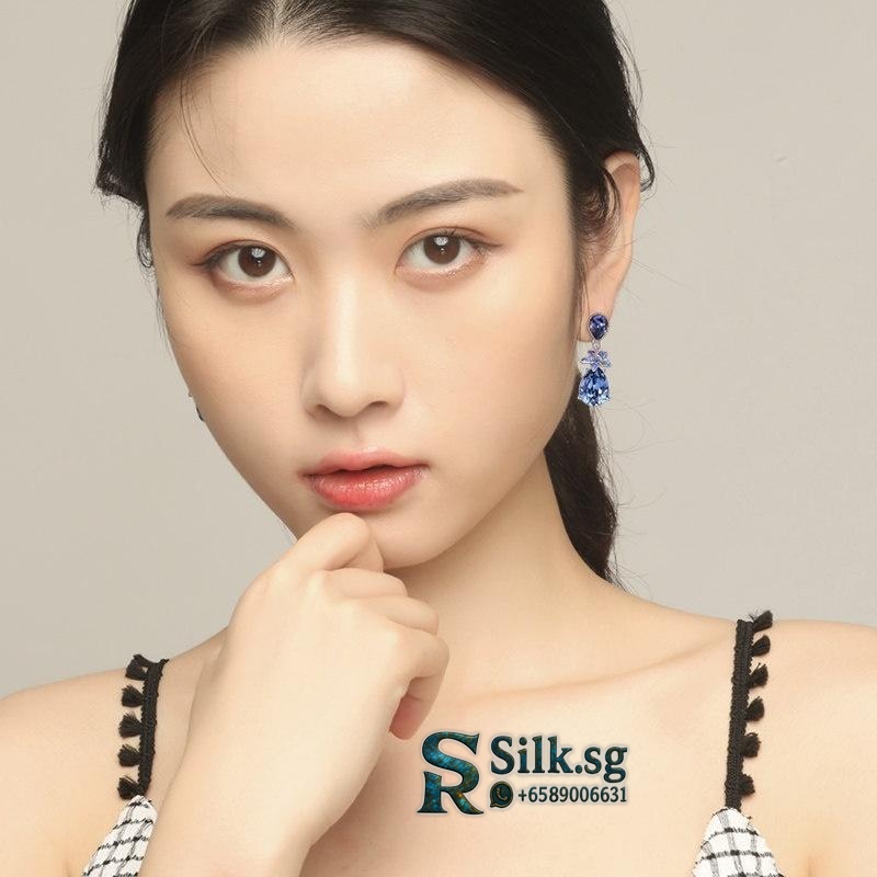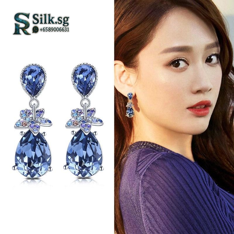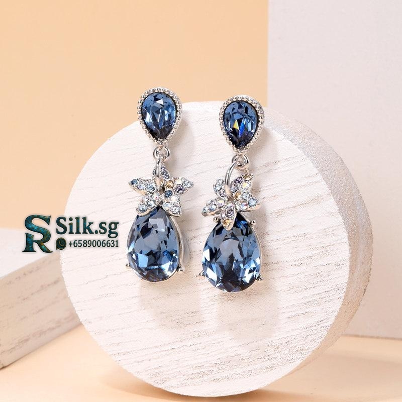 BLANCHE – Non – Pierced Crystal Ear Cuffs, Teardrop Blue Korean Style