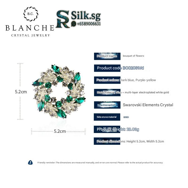 BLANCHE – Luxury Emerald Crystal Flower Brooch Pin for Women Mother’s