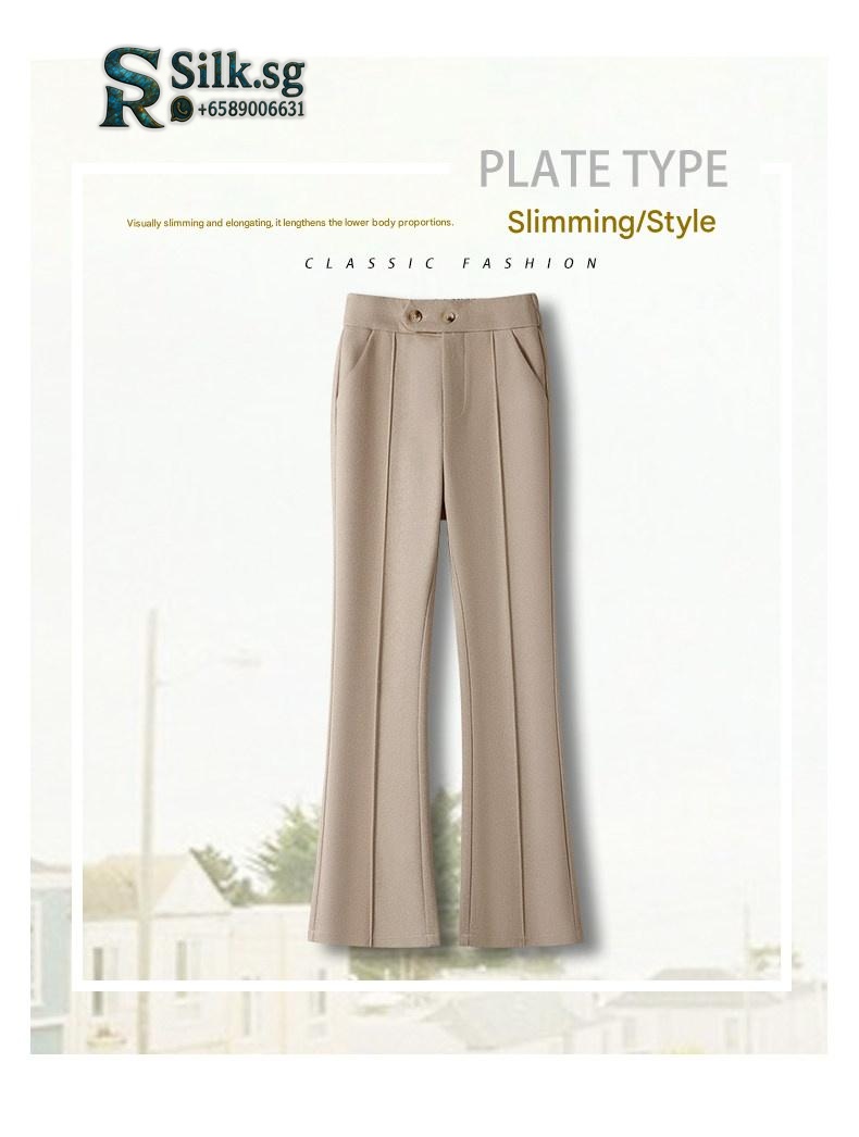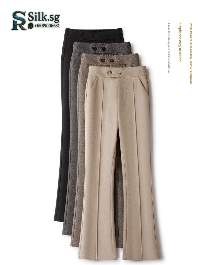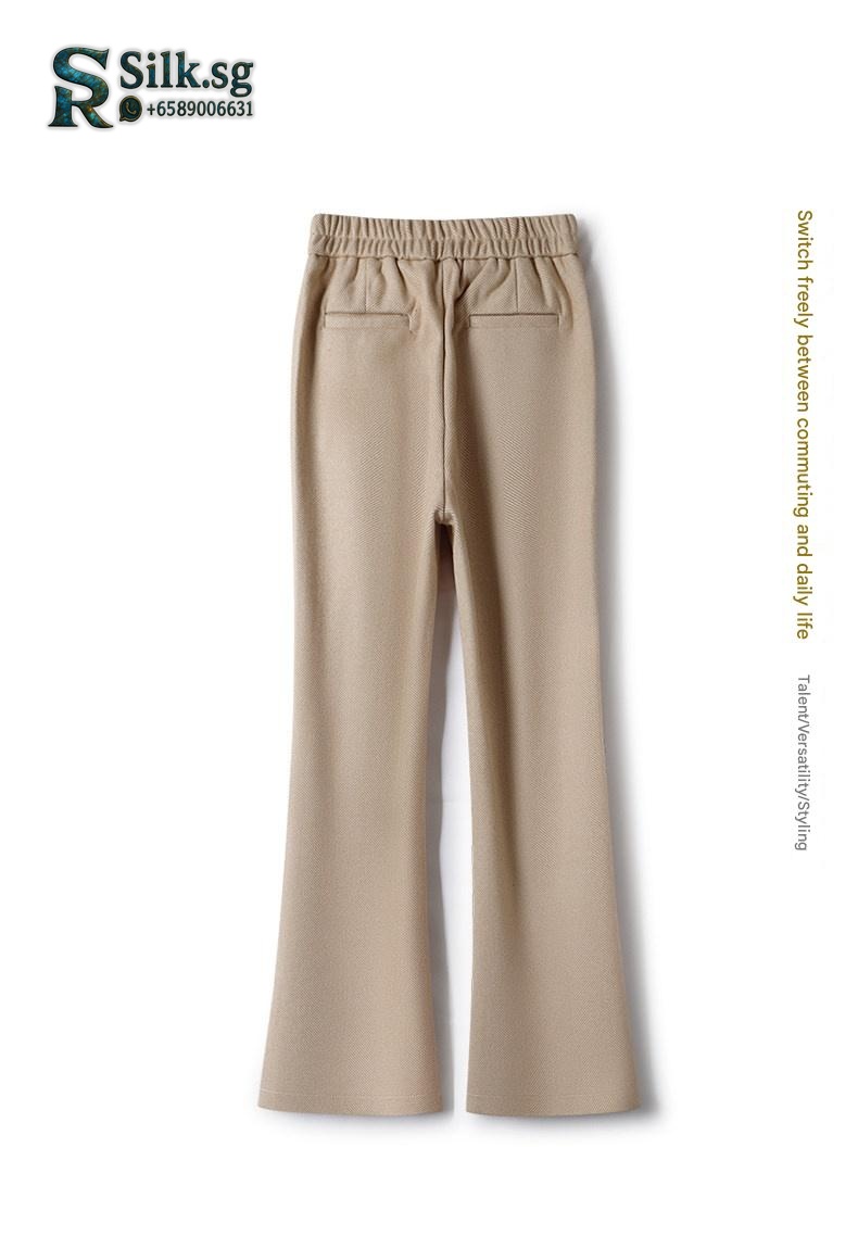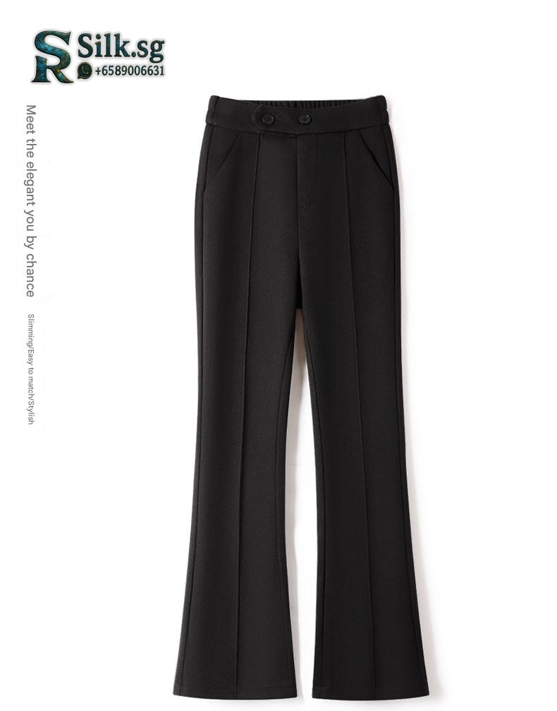 Stay warm and stylish with these fleece-lined flared pants. Their high-waisted, elastic design offers all-day comfort and a flattering silhouette. Perfect for chilly commutes or weekend outings, they combine cozy insulation with effortless Korean-style elegance. Discover your new winter favorite.