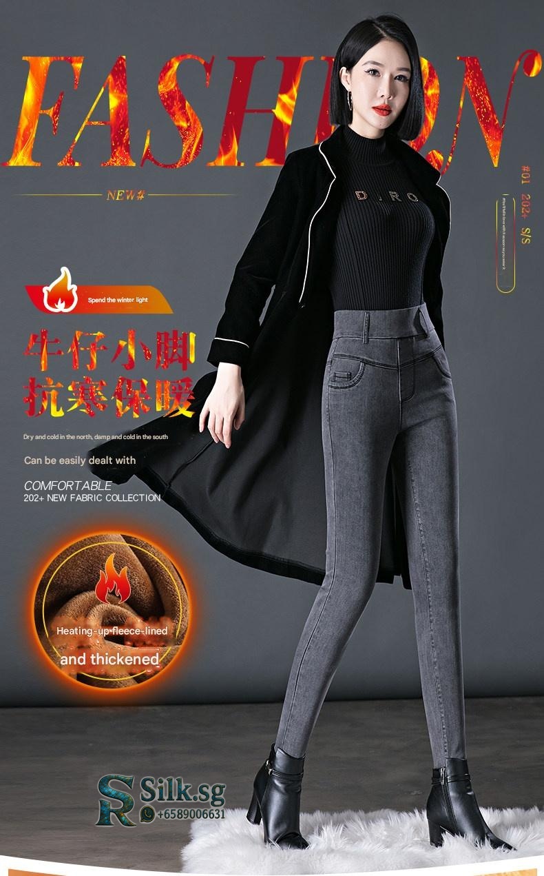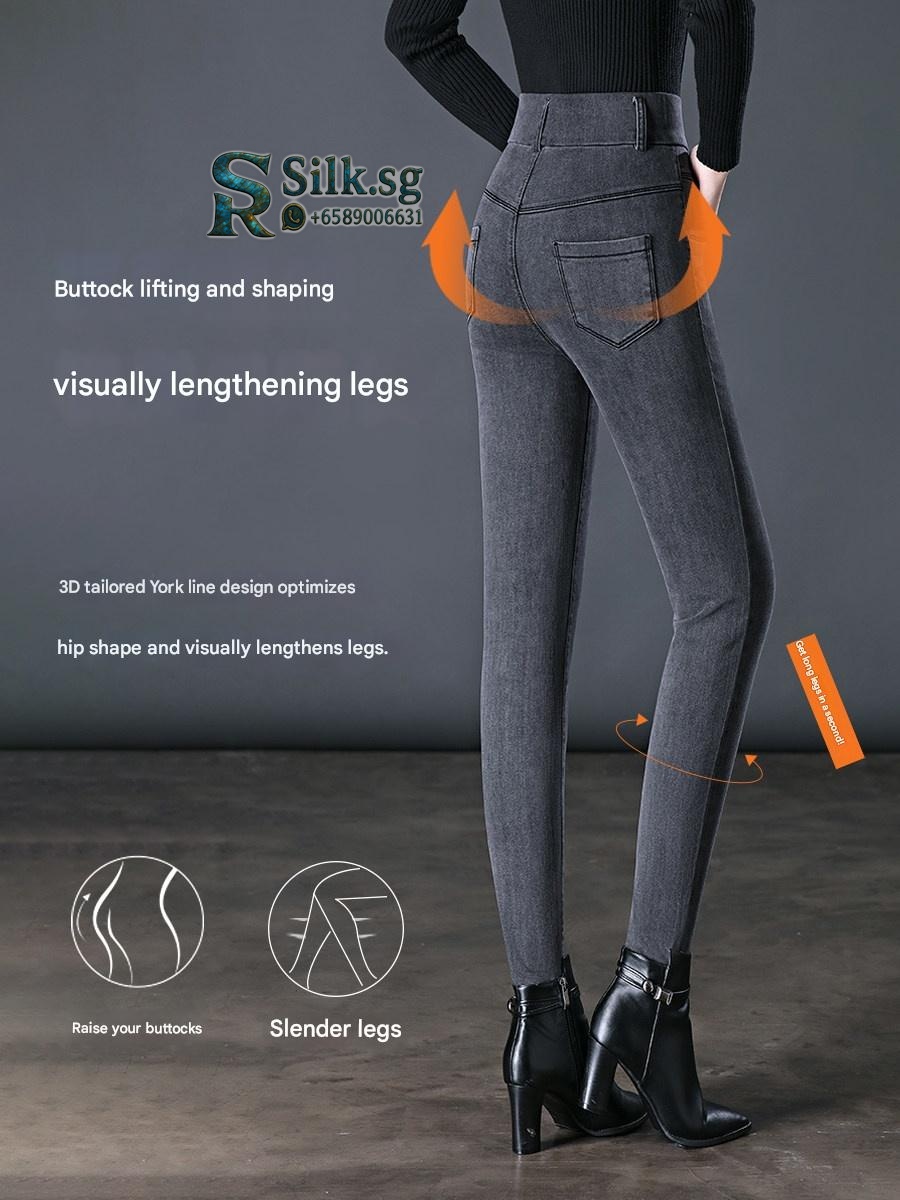 QueenStyle – Fleece – Lined High – Waist Skinny Jeans Winter Warm Stre