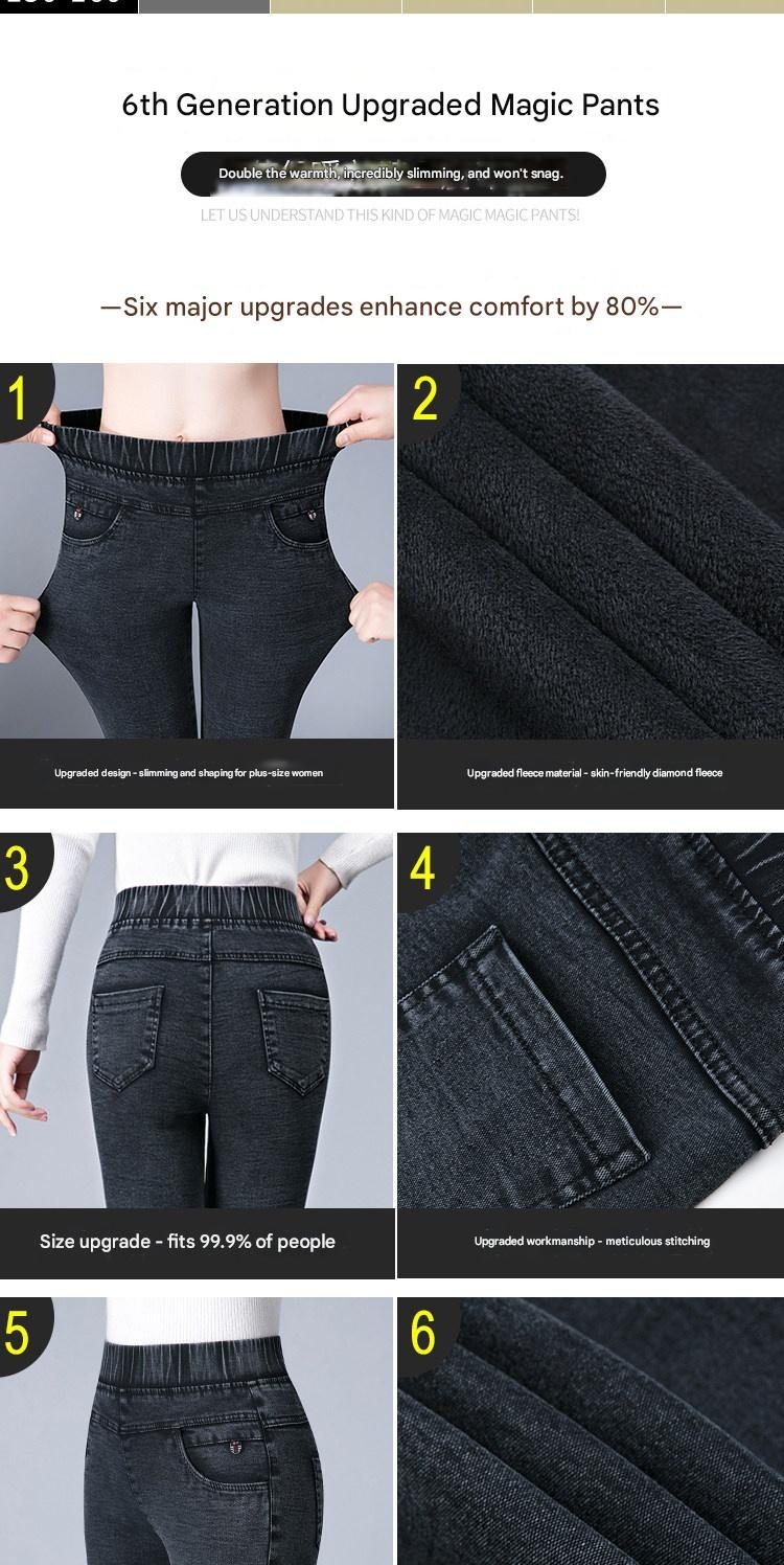 Stay cozy and stylish in these high-waist jeans, featuring a flattering slim fit and soft fleece lining for ultimate comfort. Perfect for transitional weather, they offer a retro look with modern stretch and wrinkle-resistant fabric. Discover your new favorite pants for effortless everyday wear.