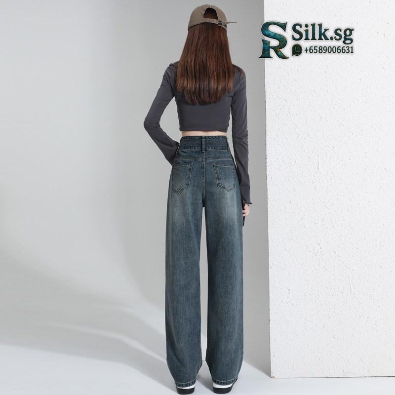 Nuxiu’erjiao – Retro High – Waist Fleece – Lined Jeans for Women, Stre