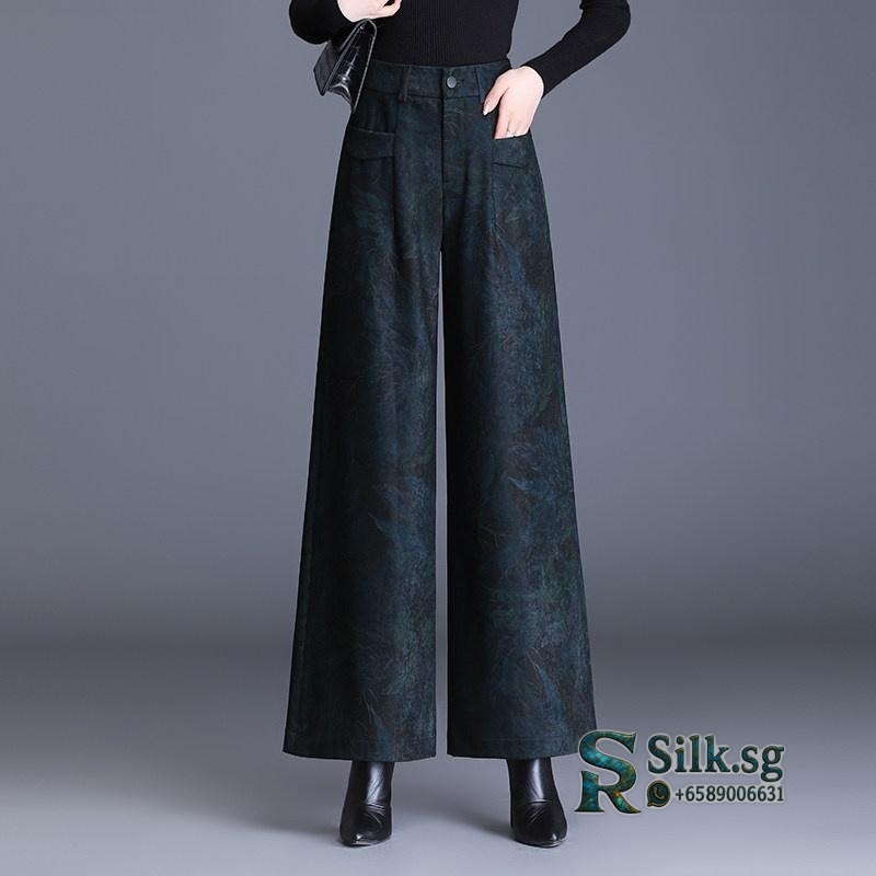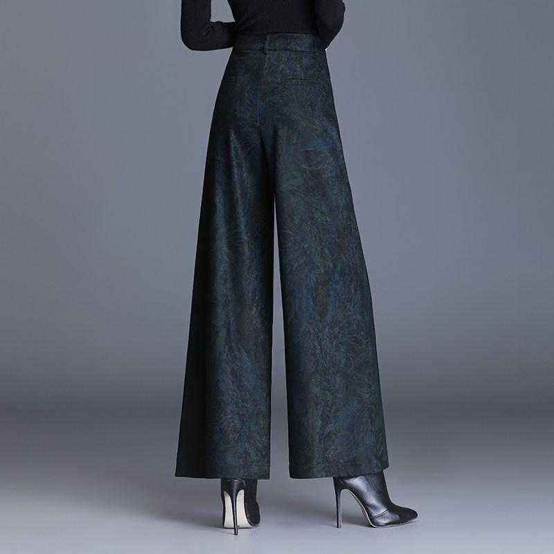 Manliu – 2024 Winter High Waist Wide Leg Pants for Women, Fleece Lined