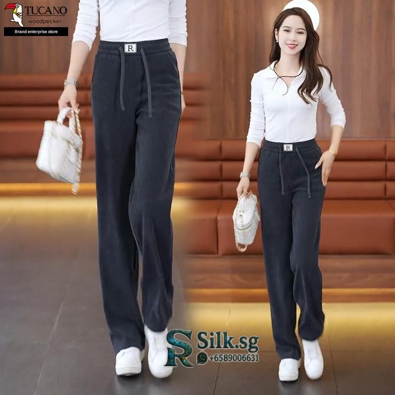 Manliu – 2024 Winter High Waist Wide Leg Pants for Women, Fleece Lined