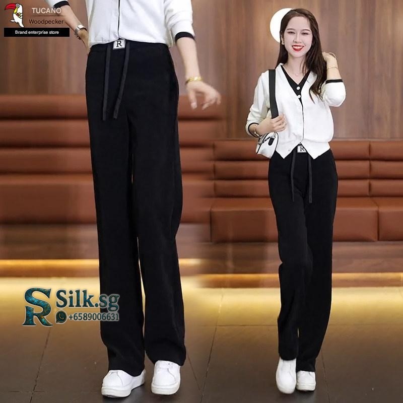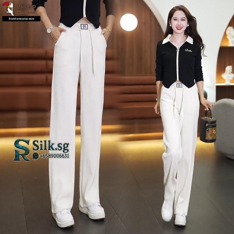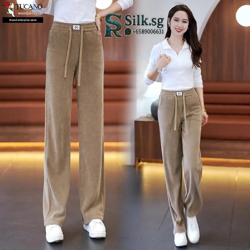Stay cozy and stylish all season with these warm, high-waisted sweatpants. Their versatile straight-leg drape offers effortless comfort and a flattering fit. Perfect for daily wear, they are your go-to for a polished, relaxed look. Discover your new favorite trousers.