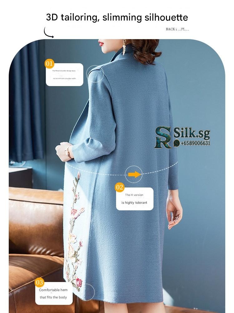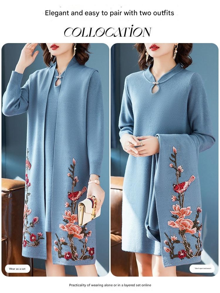 Experience timeless elegance with this premium cashmere wool two-piece dress set. Its soft, loose fit and delicate embroidery offer effortless comfort and sophisticated style. Perfect for middle-aged women seeking a graceful look for spring or autumn outings. Discover your new favorite outfit.
