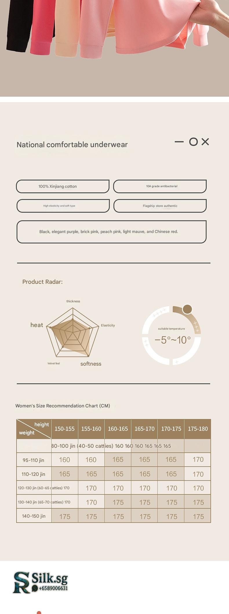 Hengyuanxiang – Women’s Thermal Underwear Set, Pure Cotton, Antibacter