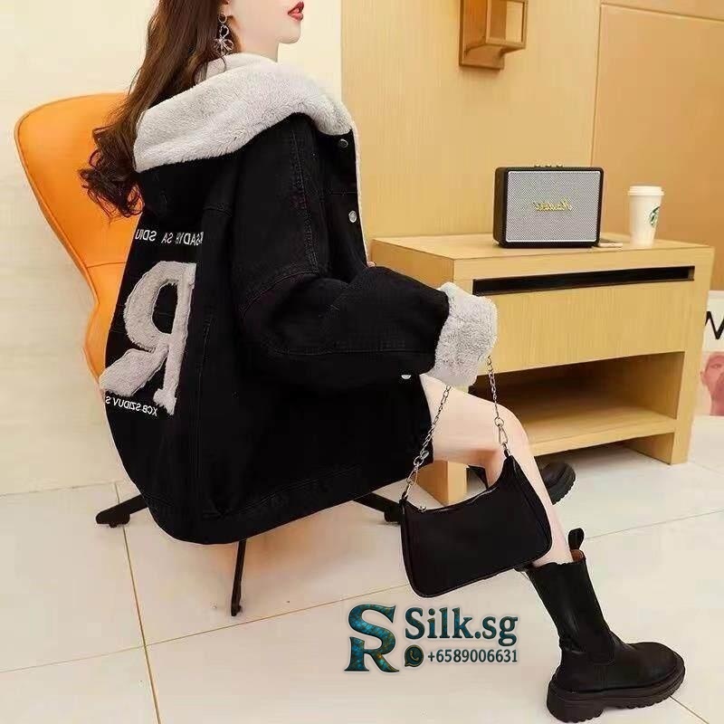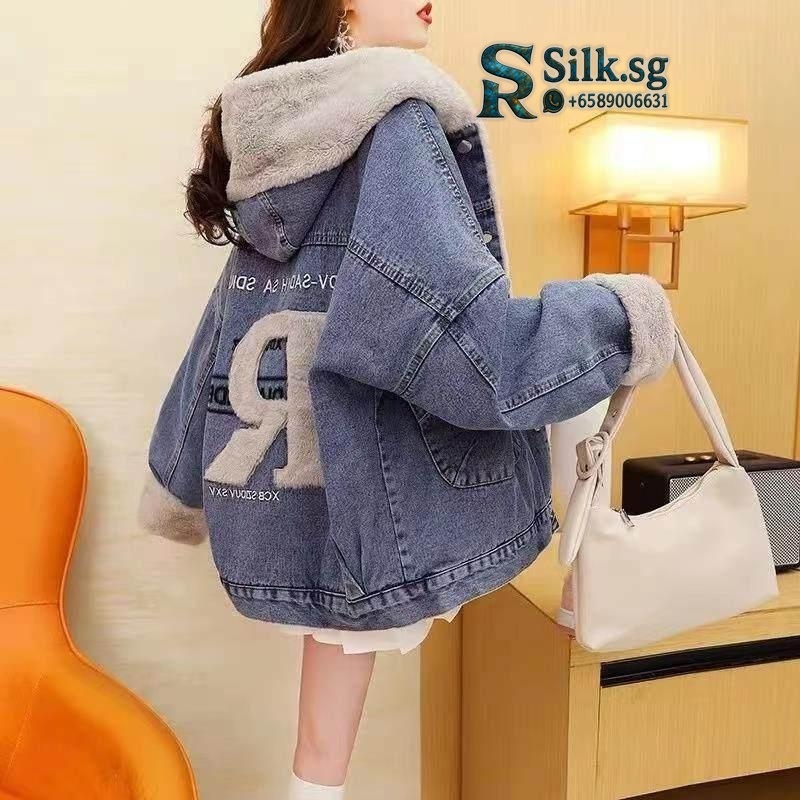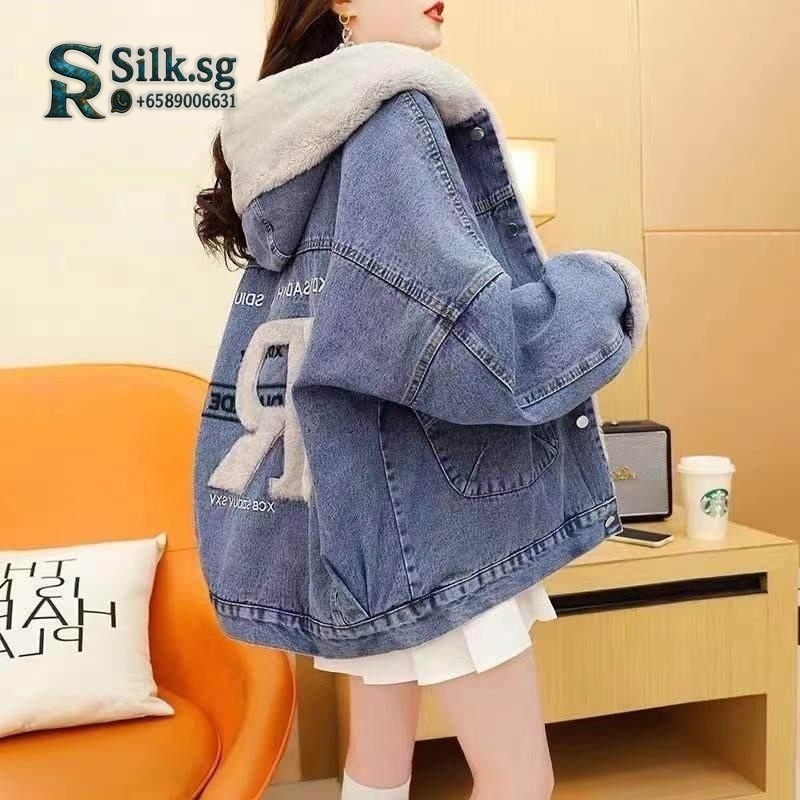 NoBrand – Fleece – Lined Hooded Denim Jacket Women Loose Fit Winter Co