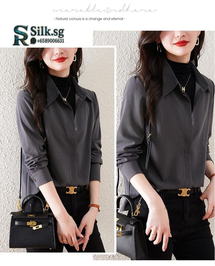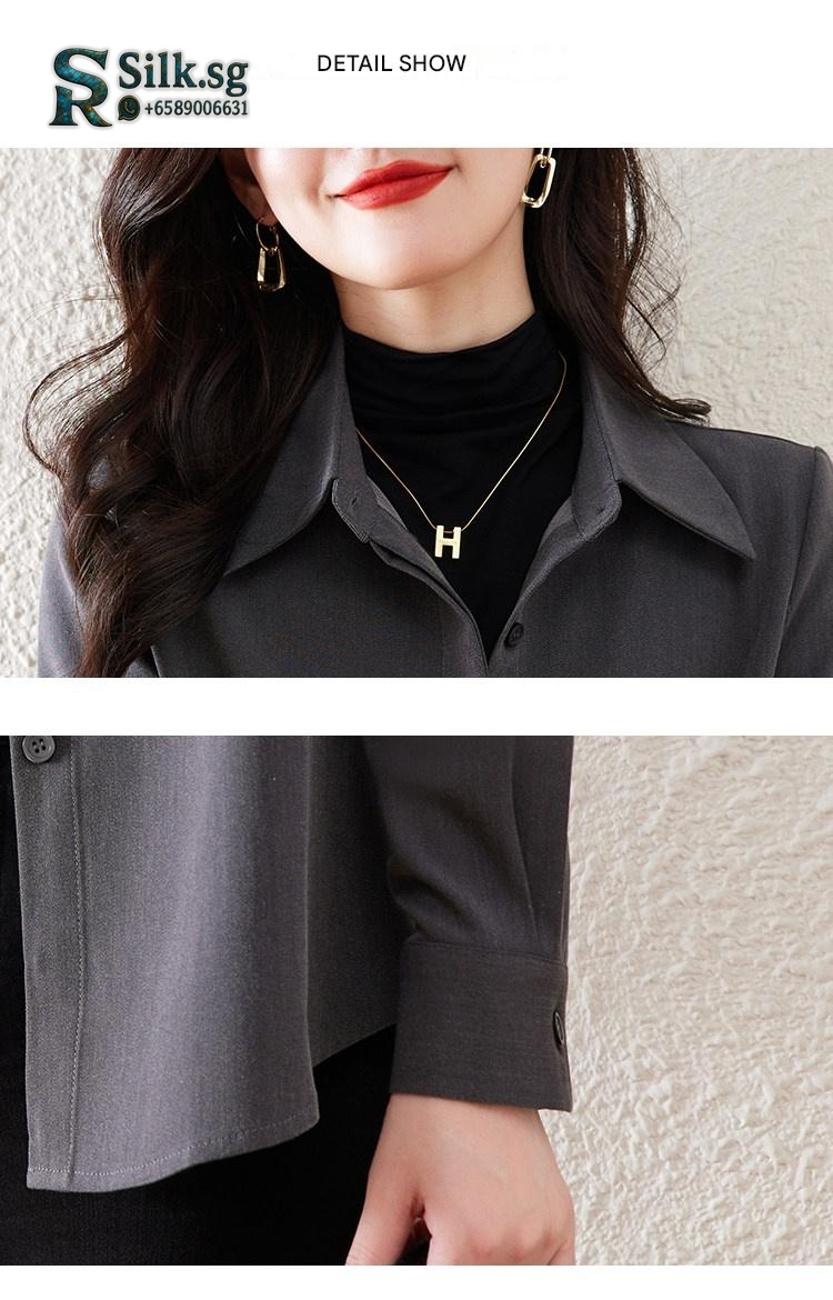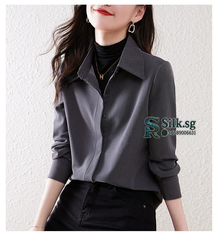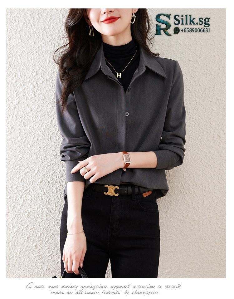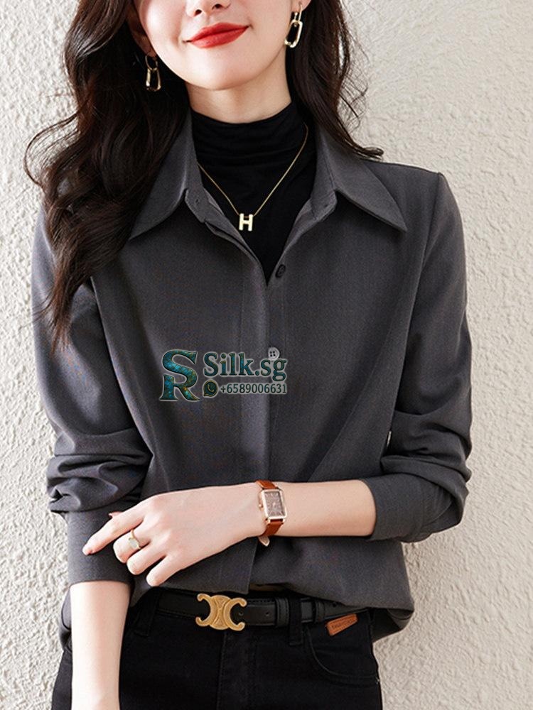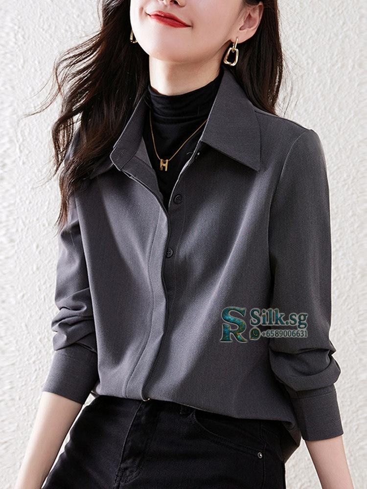 Experience the comfort and elegance of this brushed texture womens shirt, perfect for effortless layering in any season. Its loose, commuter-friendly fit offers versatile style for middle-aged women, making it a chic, tummy-covering essential for daily wear. Discover your new favorite go-to top.