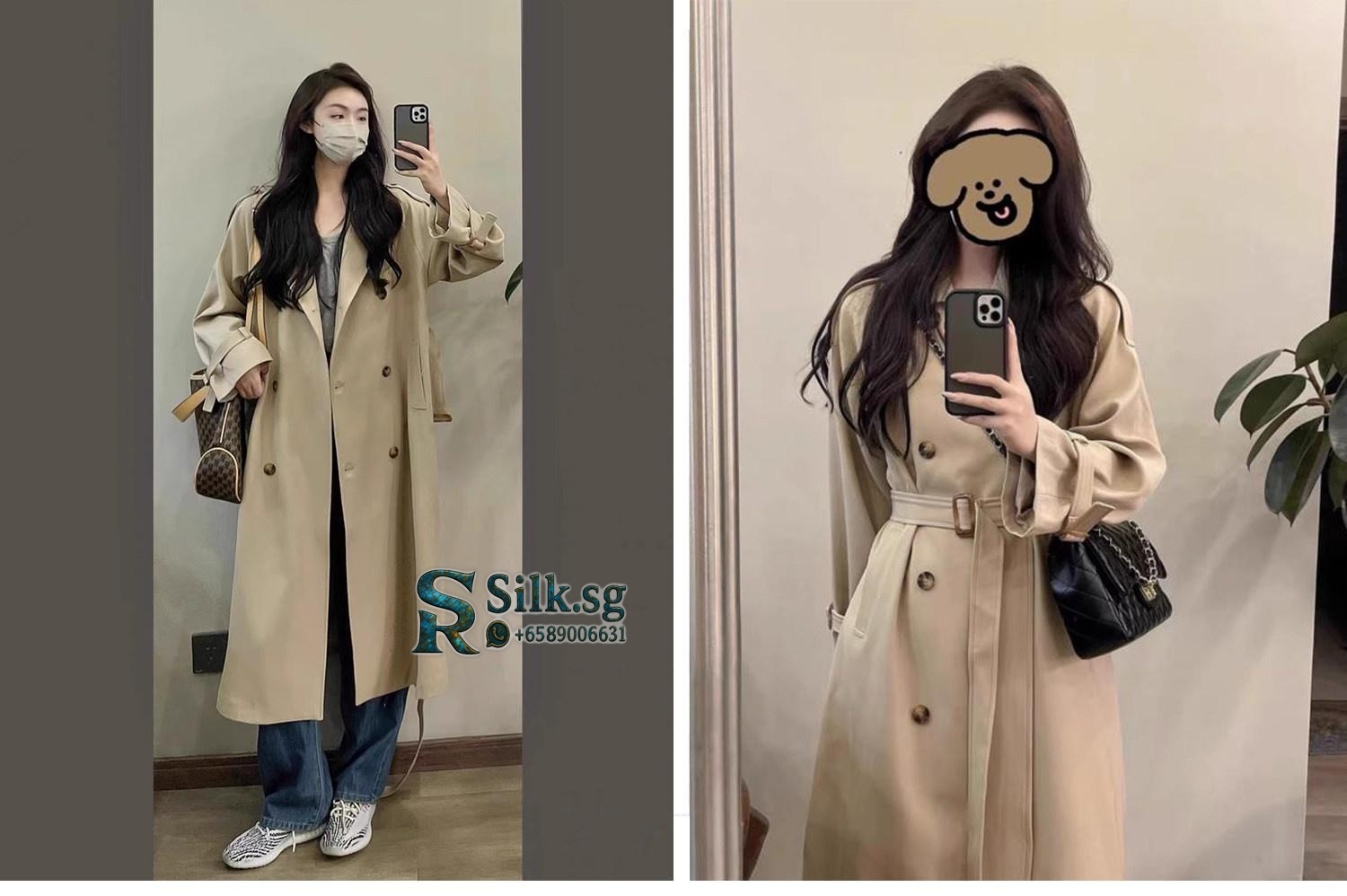 Petite Women’s Korean – Style Trench Coat – Mid – Length Overcoat for