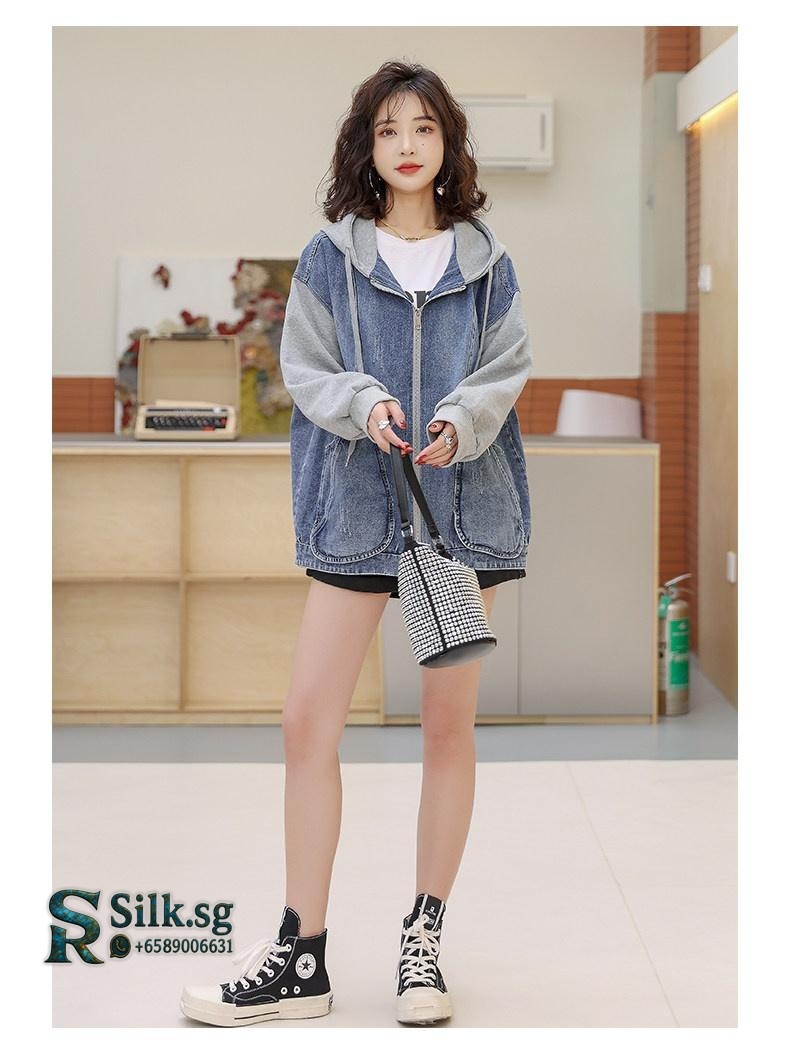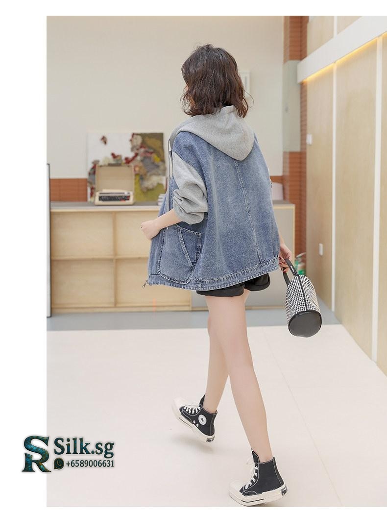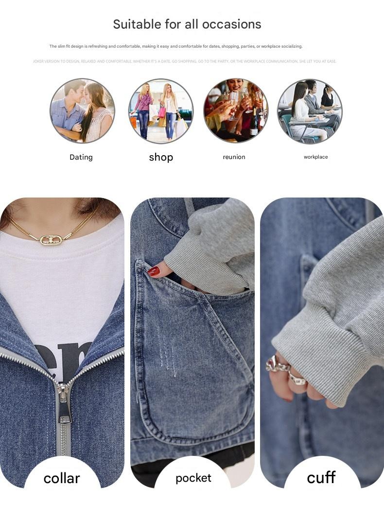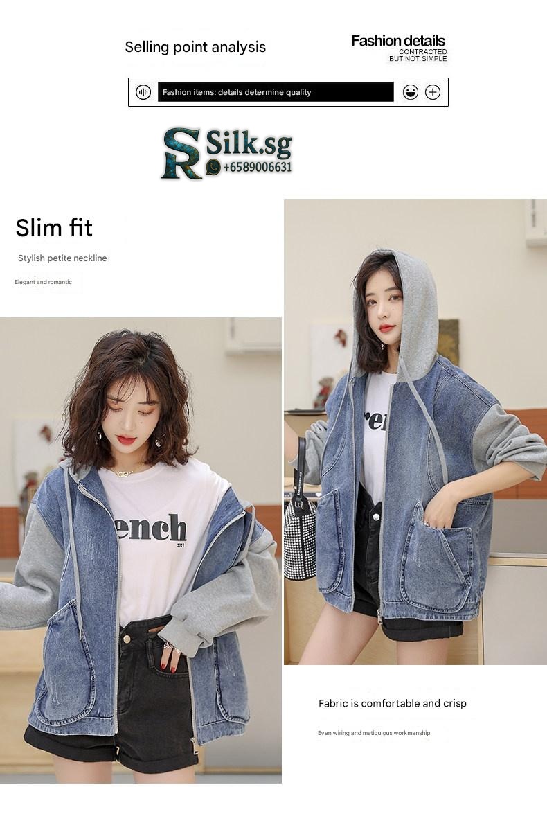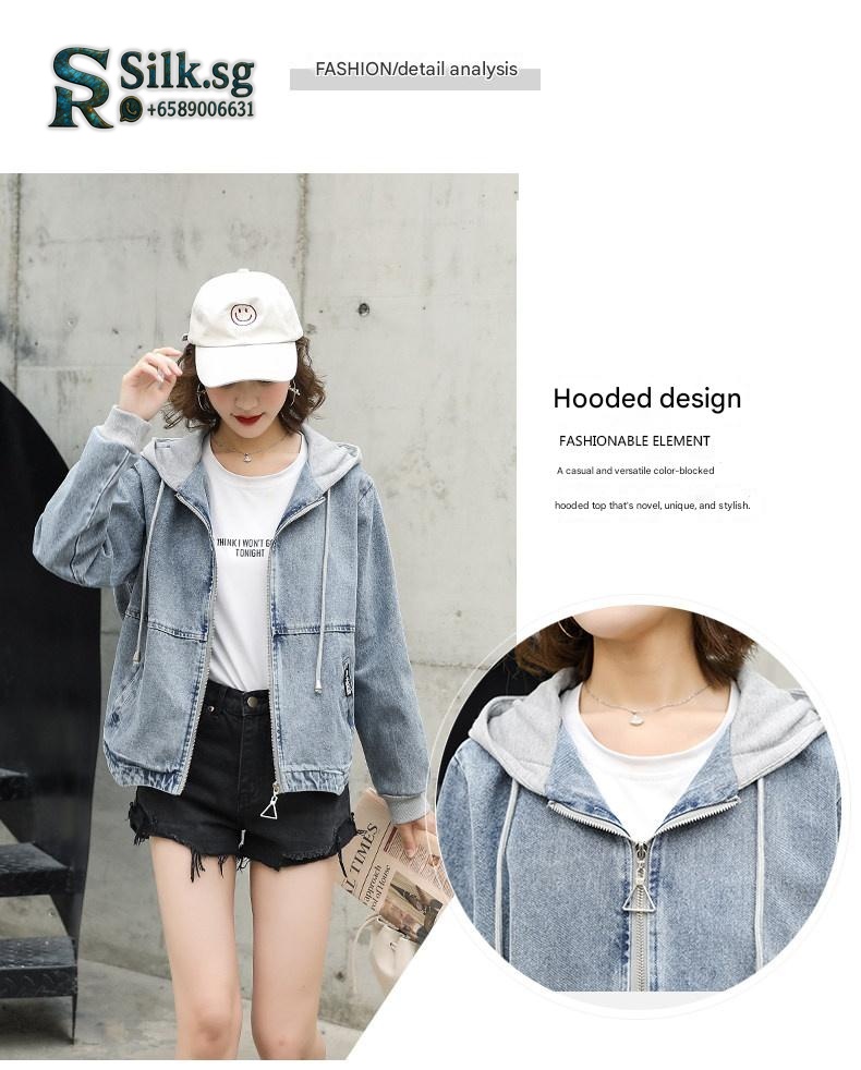 Stay effortlessly stylish with this versatile denim jacket, featuring a unique patchwork design and cozy hood. Perfect for petite frames, its loose casual fit adds a youthful edge to any spring or autumn outfit. Discover your new favorite layer for everyday adventures.