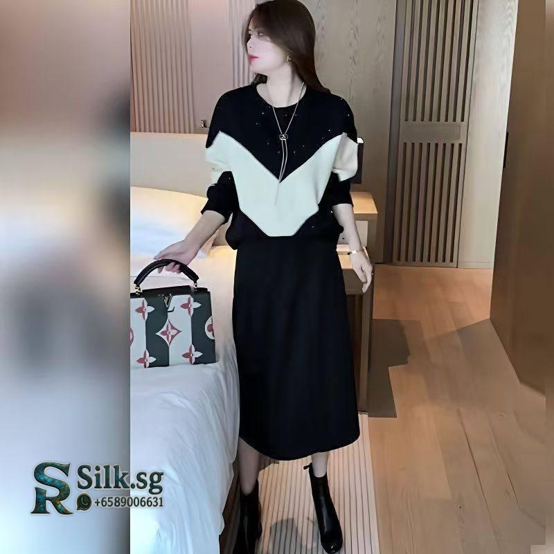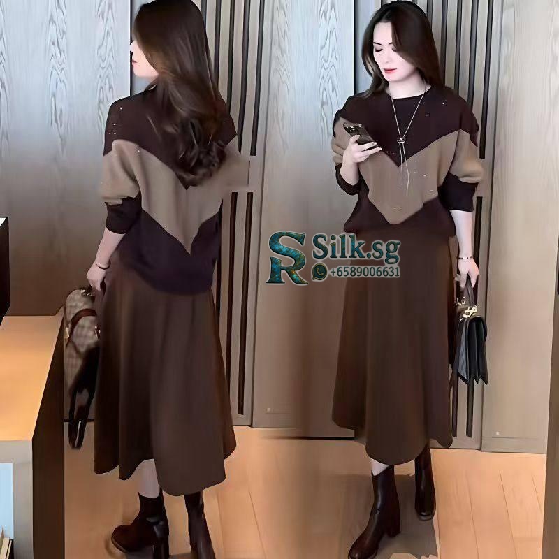Miao Xiao Yin – Korean Style Women’s Knit Sweater & Skirt Two – Piece