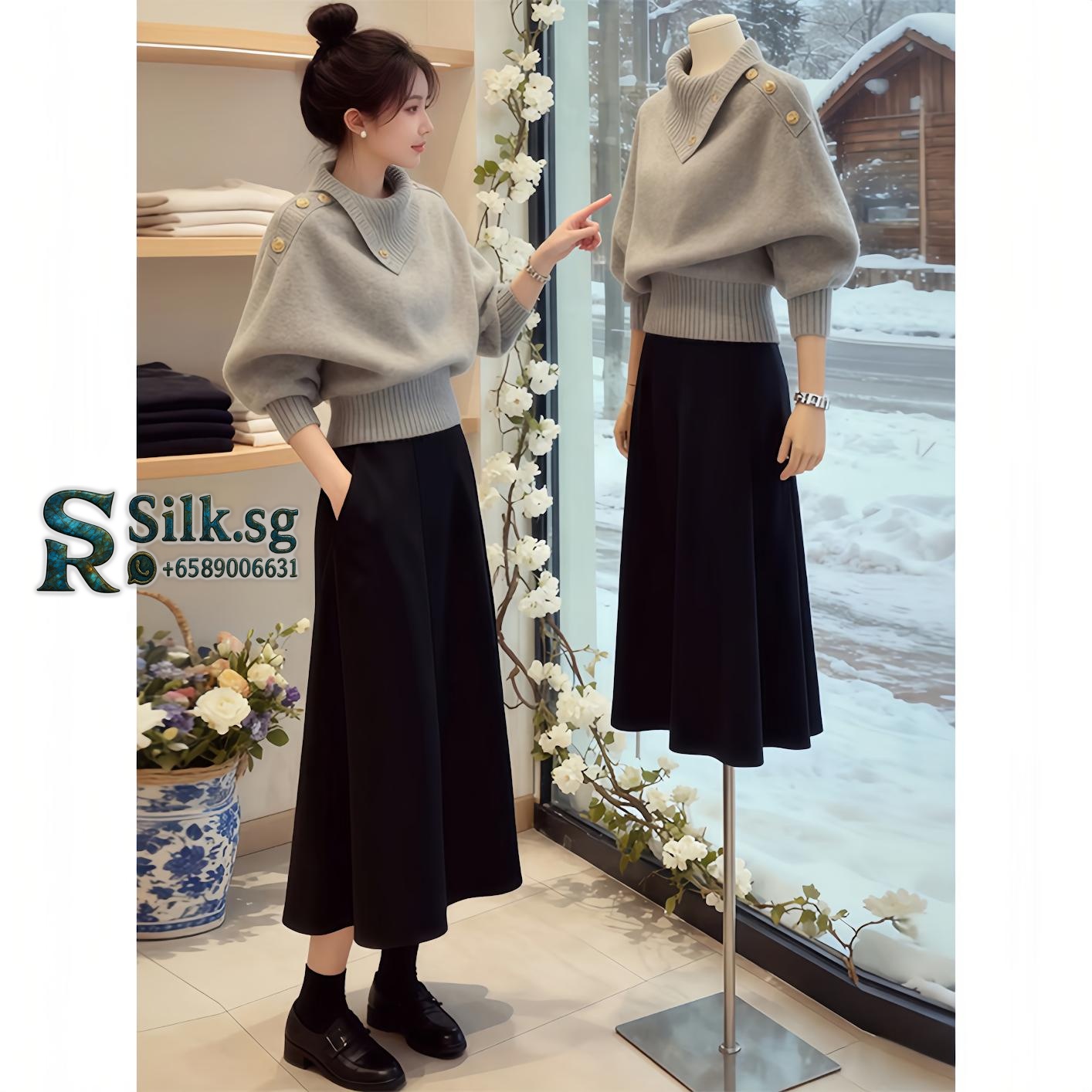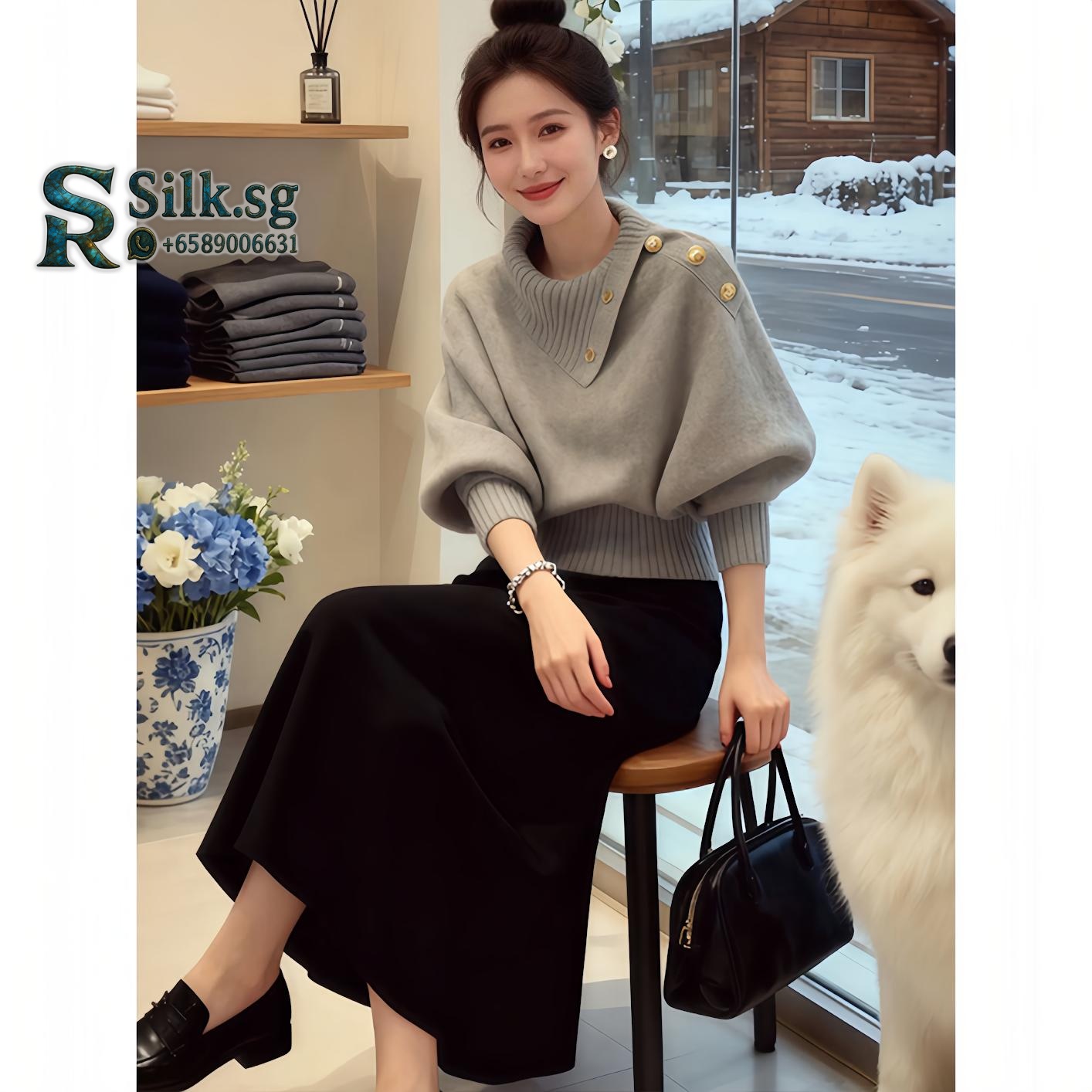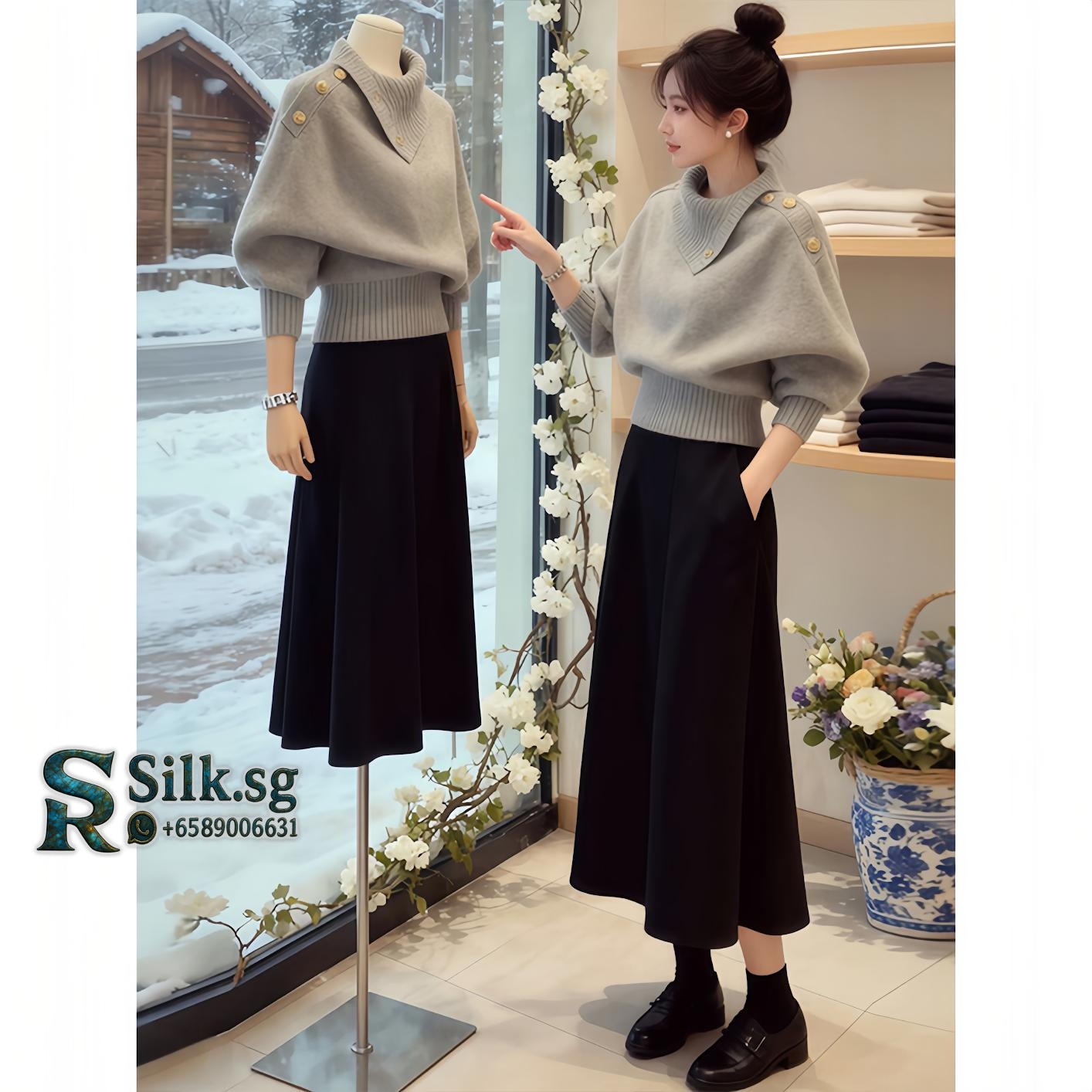 Experience cozy elegance with this gray knit sweater, perfect for daily comfort and effortless style. Its unique irregular collar adds a touch of sophistication, making it ideal for women seeking versatile warmth and a mature, beautiful look. Embrace warmth and confidence today.