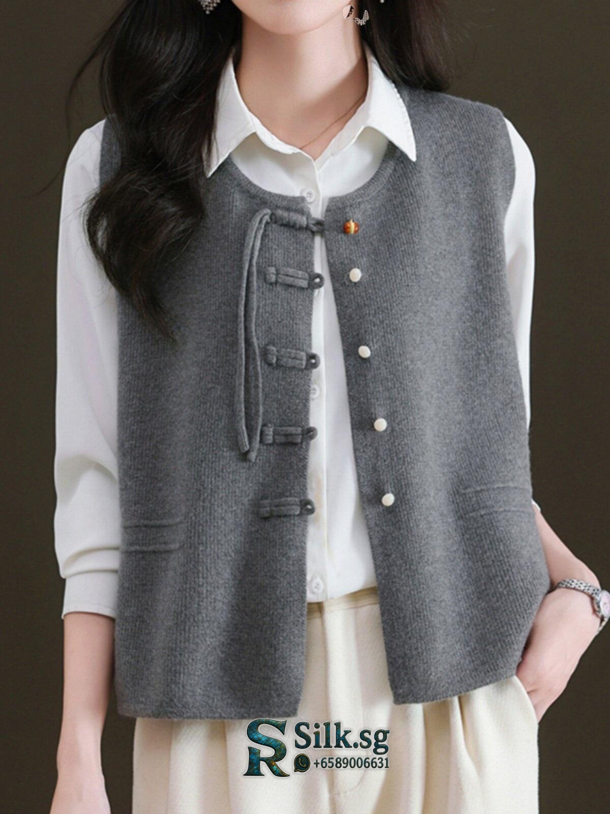 EleganceVest – Chinese Style Knitted Cardigan Women’s Sleeveless Top 2