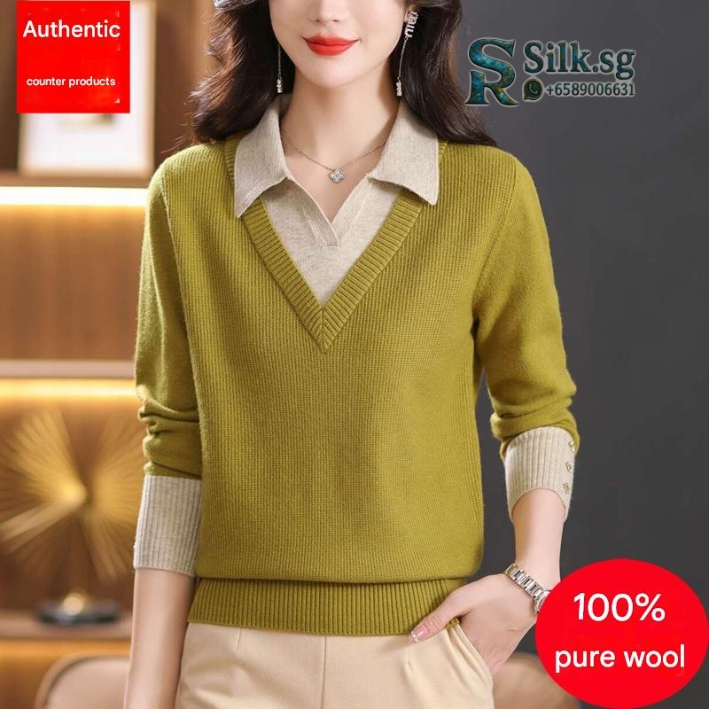 Yanfu – Women’s 2025 Autumn Winter Fake Two – Piece Wool Sweater Pullo