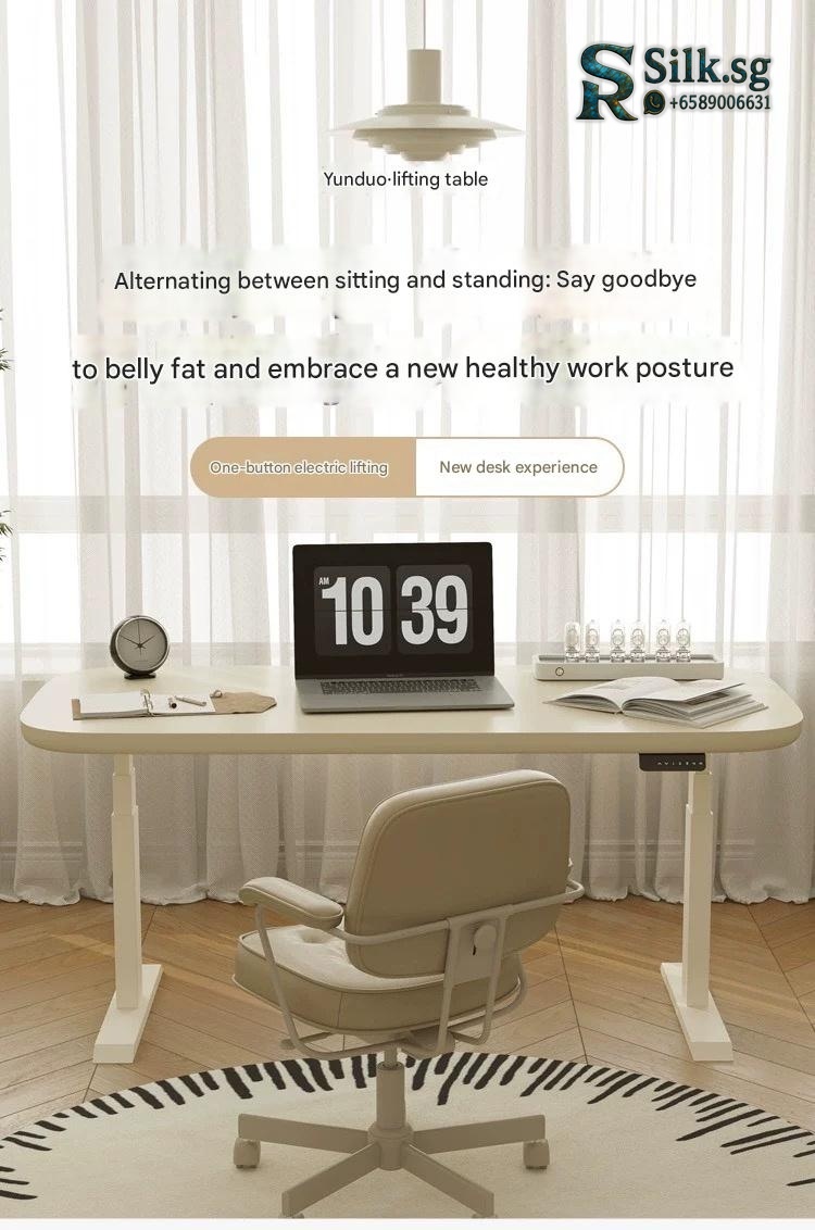 Enjoy seamless workspace flexibility with this cream-style solid wood adjustable desk. Perfect for home offices or study rooms, it offers smooth height changes, sturdy construction, and customizable sizes to suit your needs. Elevate your comfort and productivity today.