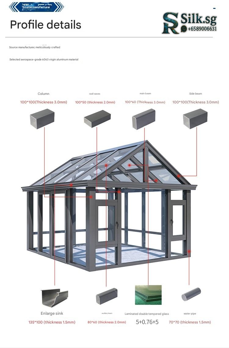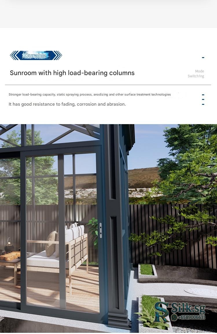 Transform your space with durable aluminum alloy sunroom doors and windows, providing natural light, enhanced insulation, and a stylish look. Perfect for villa owners seeking a seamless indoor-outdoor experience. Elevate your home’s comfort and beauty with our premium glass house solutions.