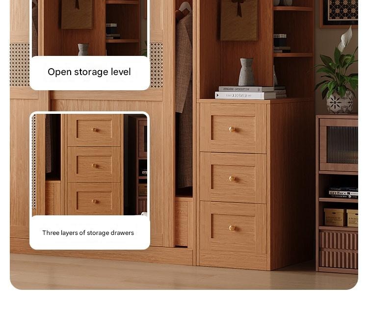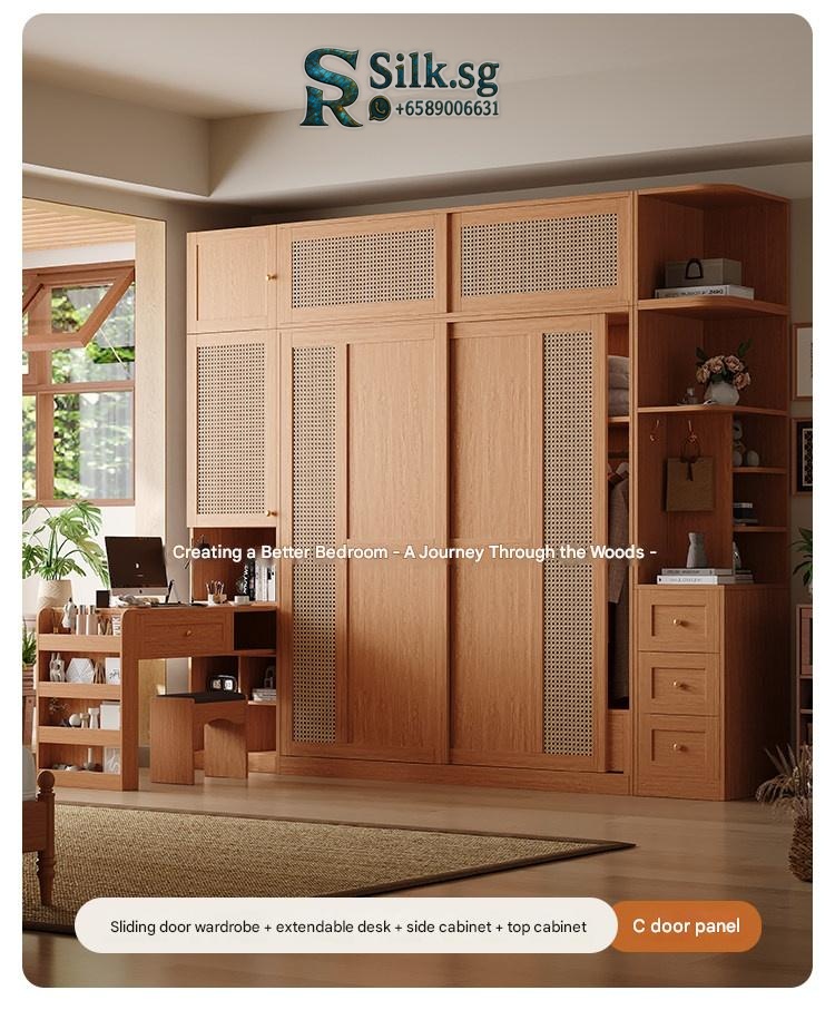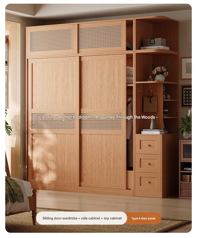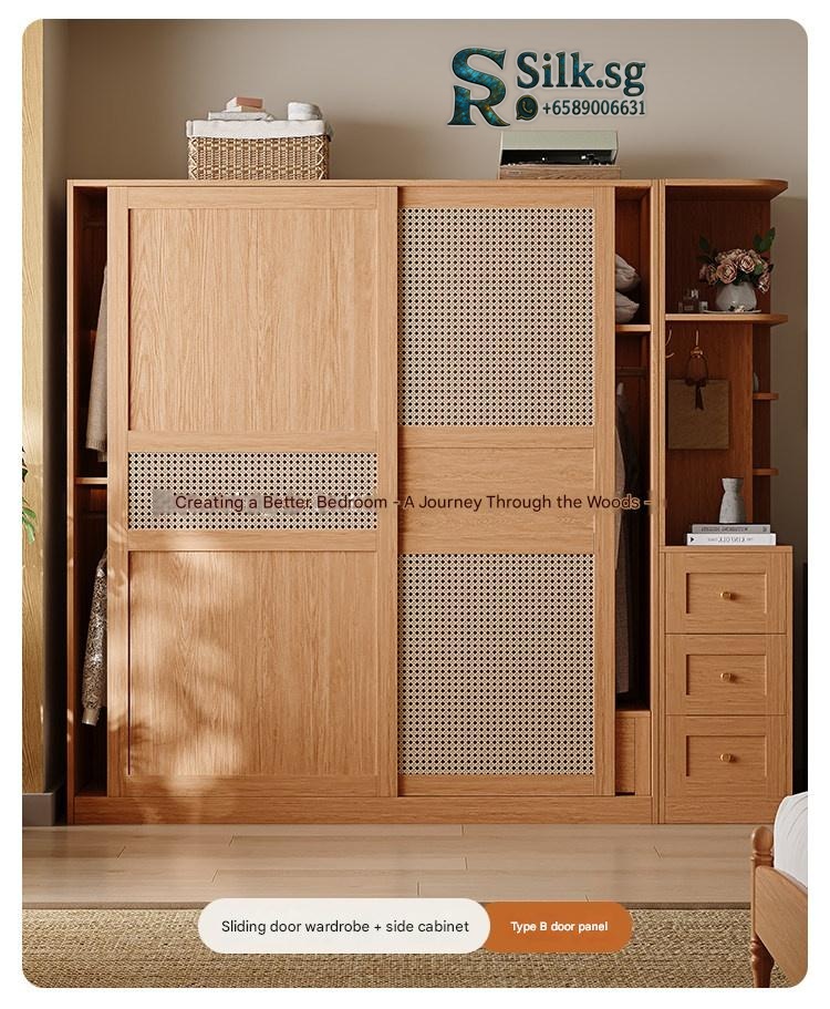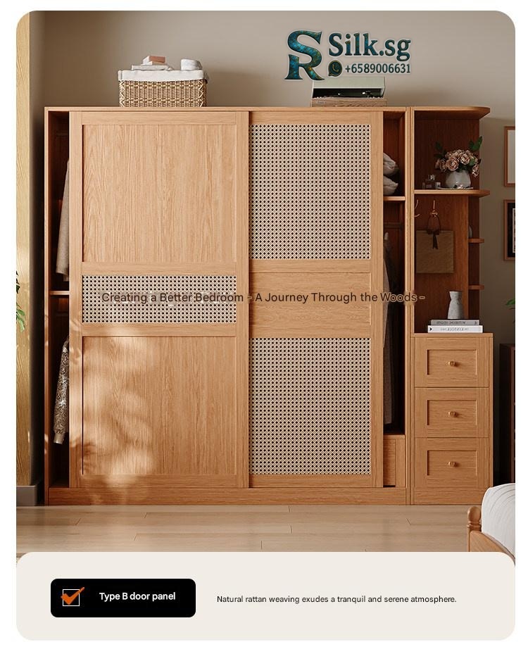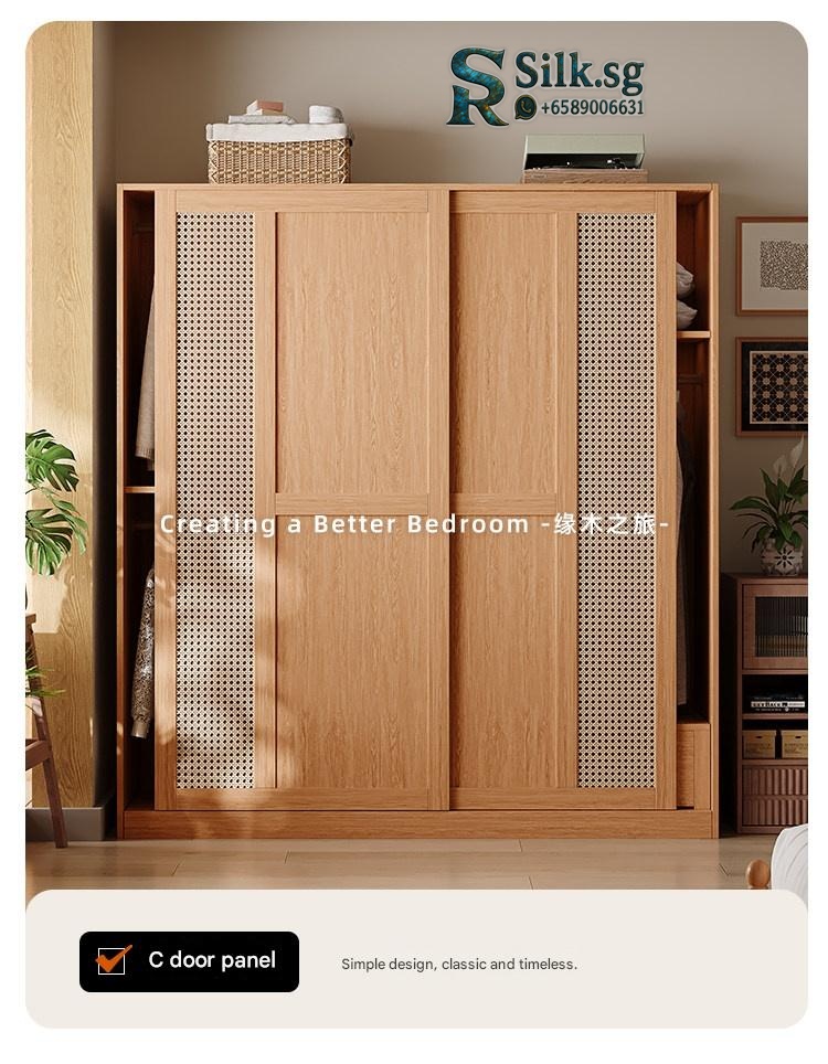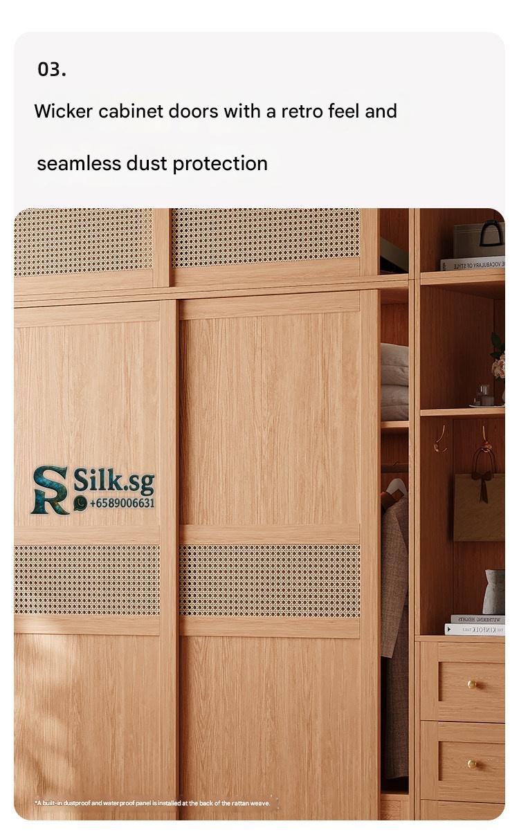 Upgrade your bedroom with this stylish woven rattan sliding wardrobe, perfect for small apartments. Enjoy clutter-free storage, natural wood charm, and smooth sliding doors that add elegance and convenience to your space. Transform your bedroom today.