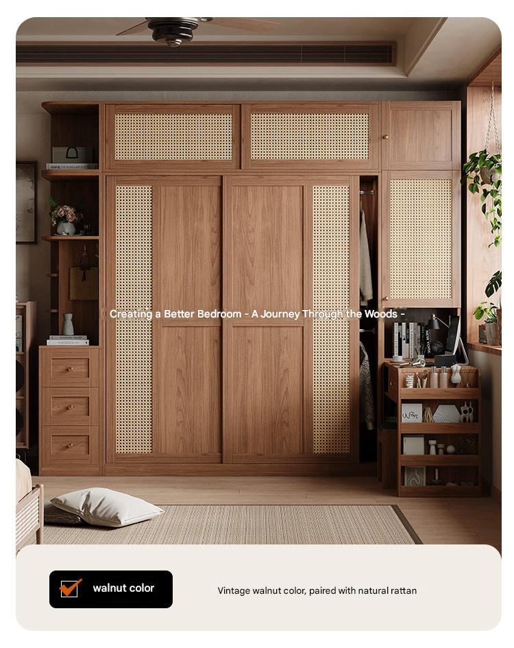 Woven Rattan Sliding – Woven Rattan Sliding Door Wardrobe for Bedroom Clothes Storage Cabinet
