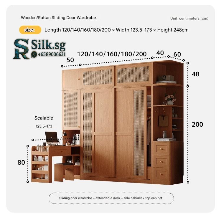 | Type | 1.2m Wardrobe (Dustproof Wicker Door) 18MM Thick Back Panel, 1.2m Wardrobe + Side & Top Cabinets (Dustproof Wicker Door) Total Length 1.6m / Height 2.48m, 1.2m Wardrobe + Side Cabinet (Dustproof Wicker Door) Total Length 1.6m, 1.2m Wardrobe + Top Cabinet (Dustproof Wicker Door) Direct from Foshan Factory, 1.4m Wardrobe (Dustproof Wicker Door) 18MM Thick Back Panel, 1.4m Wardrobe + Side & Top Cabinets (Dustproof Wicker Door) Total Length 1.8m / Height 2.48m, 1.4m Wardrobe + Side Cabinet (Dustproof Wicker Door) Total Length 1.8m, 1.4m Wardrobe + Top Cabinet (Dustproof Wicker Door) Direct from Foshan Factory, 1.6m Wardrobe (Dustproof Wicker Door) 18MM Thick Back Panel, 1.6m Wardrobe + Side & Top Cabinets (Dustproof Wicker Door) Total Length 2.0m / Height 2.48m, 1.6m Wardrobe + Side Cabinet (Dustproof Wicker Door) Total Length 2.0m, 1.6m Wardrobe + Top Cabinet (Dustproof Wicker Door) Direct from Foshan Factory, 1.8m Wardrobe (Dustproof Wicker Door) 18MM Thick Back Panel, 1.8m Wardrobe + Side & Top Cabinets (Dustproof Wicker Door) Total Length 2.2m / Height 2.48m, 1.8m Wardrobe + Side Cabinet (Dustproof Wicker Door) Total Length 2.2m, 1.8m Wardrobe + Top Cabinet (Dustproof Wicker Door) Direct from Foshan Factory, 2.0m Wardrobe (Dustproof Wicker Door) 18MM Thick Back Panel, 2.0m Wardrobe + Side & Top Cabinets (Dustproof Wicker Door) Total Length 2.4m / Height 2.48m, 2.0m Wardrobe + Side Cabinet (Dustproof Wicker Door) Total Length 2.4m, 2.0m Wardrobe + Top Cabinet (Dustproof Wicker Door) Direct from Foshan Factory, Matching Desk/Vanity (Universal Left/Right), Matching Desk/Vanity + Top Cabinet (Universal Left/Right), Top Cabinet Height Extension / Cap Panel Customization, Please Contact Customer Service, Wicker/Glass Cabinet Doors Optional, Please Contact Customer Service |