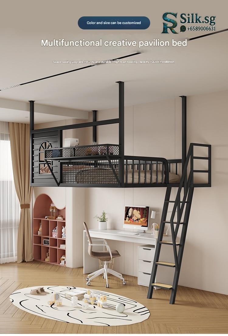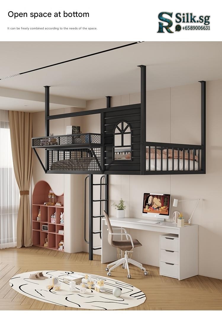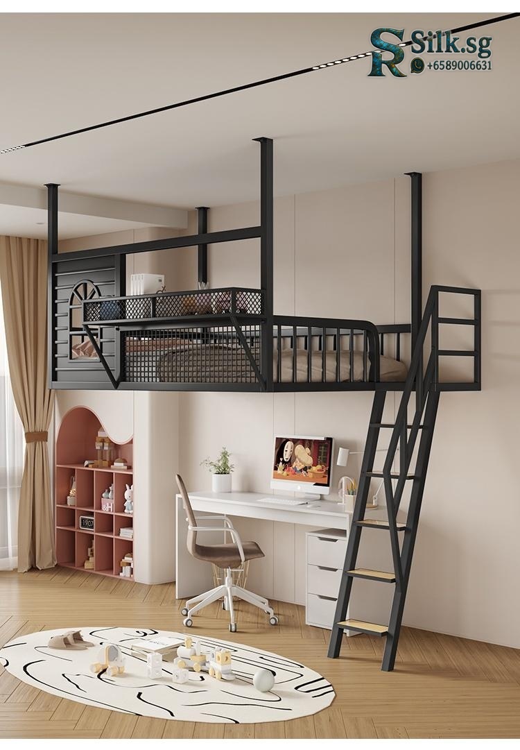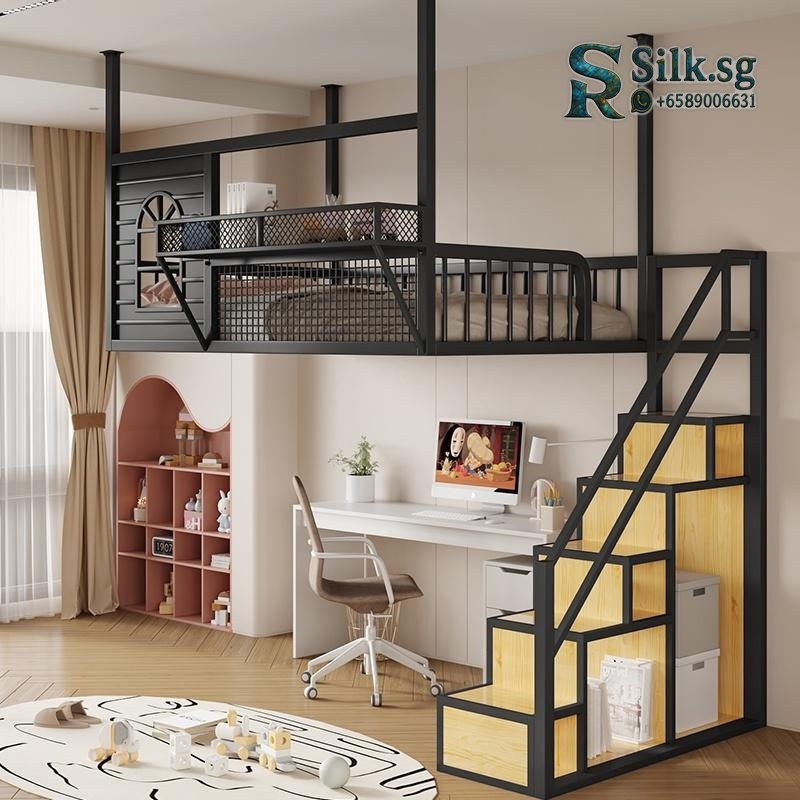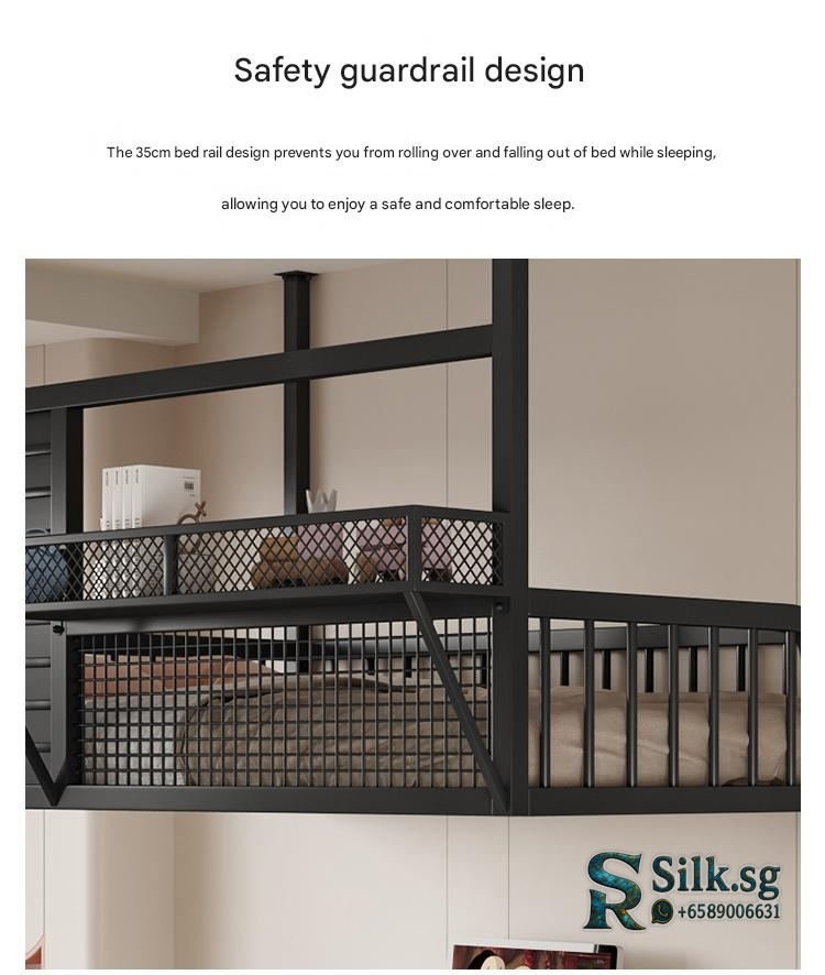 Maximize space with this modern iron loft bunk bed, perfect for small apartments and shared rooms. Its stylish design offers built-in storage and a sturdy structure, making daily living more convenient and cozy. Elevate your space with functional elegance that feels warm and trustworthy.