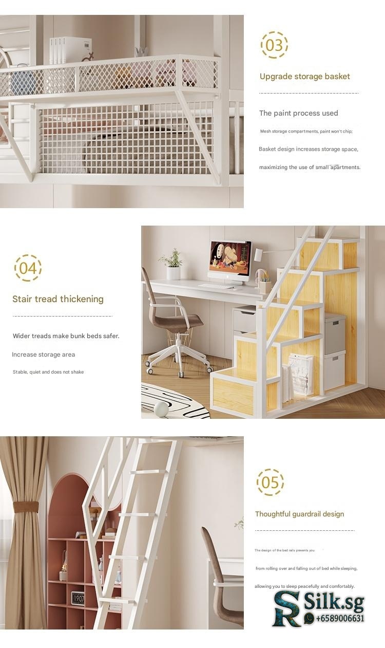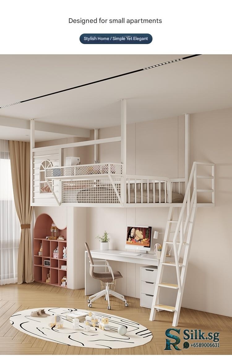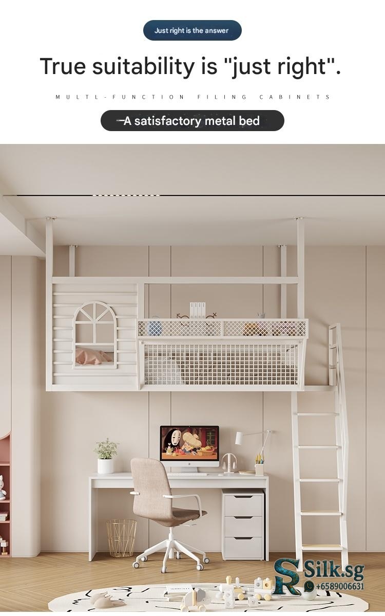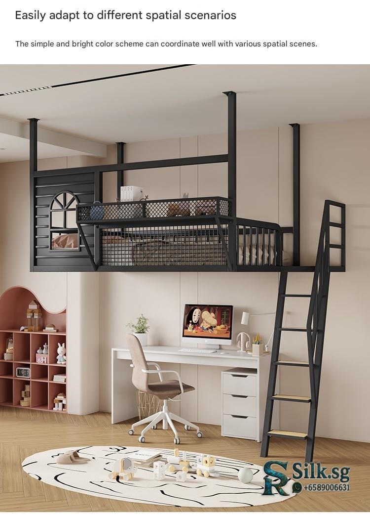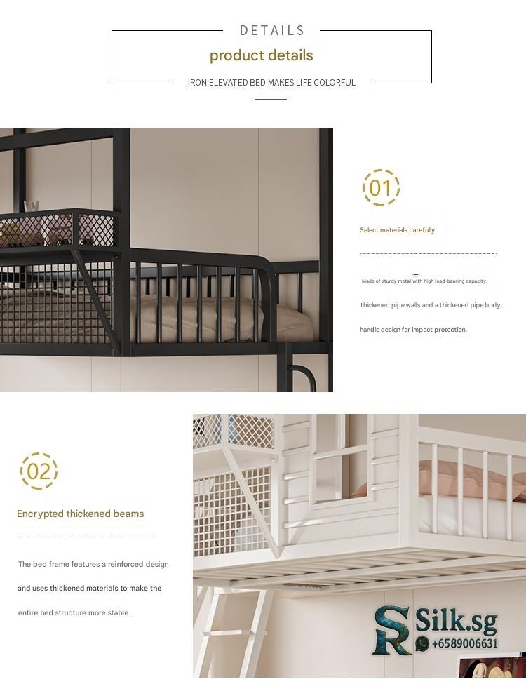 Maximize space with this modern iron loft bunk bed, perfect for small apartments and shared rooms. Its stylish design offers built-in storage and a sturdy structure, making daily living more convenient and cozy. Elevate your space with functional elegance that feels warm and trustworthy.