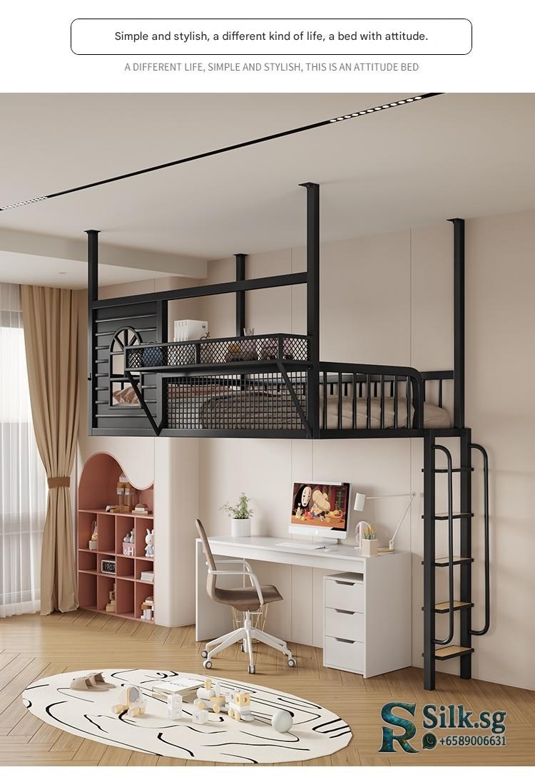 Nordic Loft Bunk Bed – Nordic Loft Bunk Bed Apartment Iron Art Hanging Ceiling Loft Bed Duple