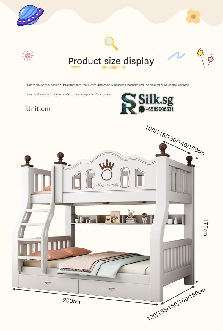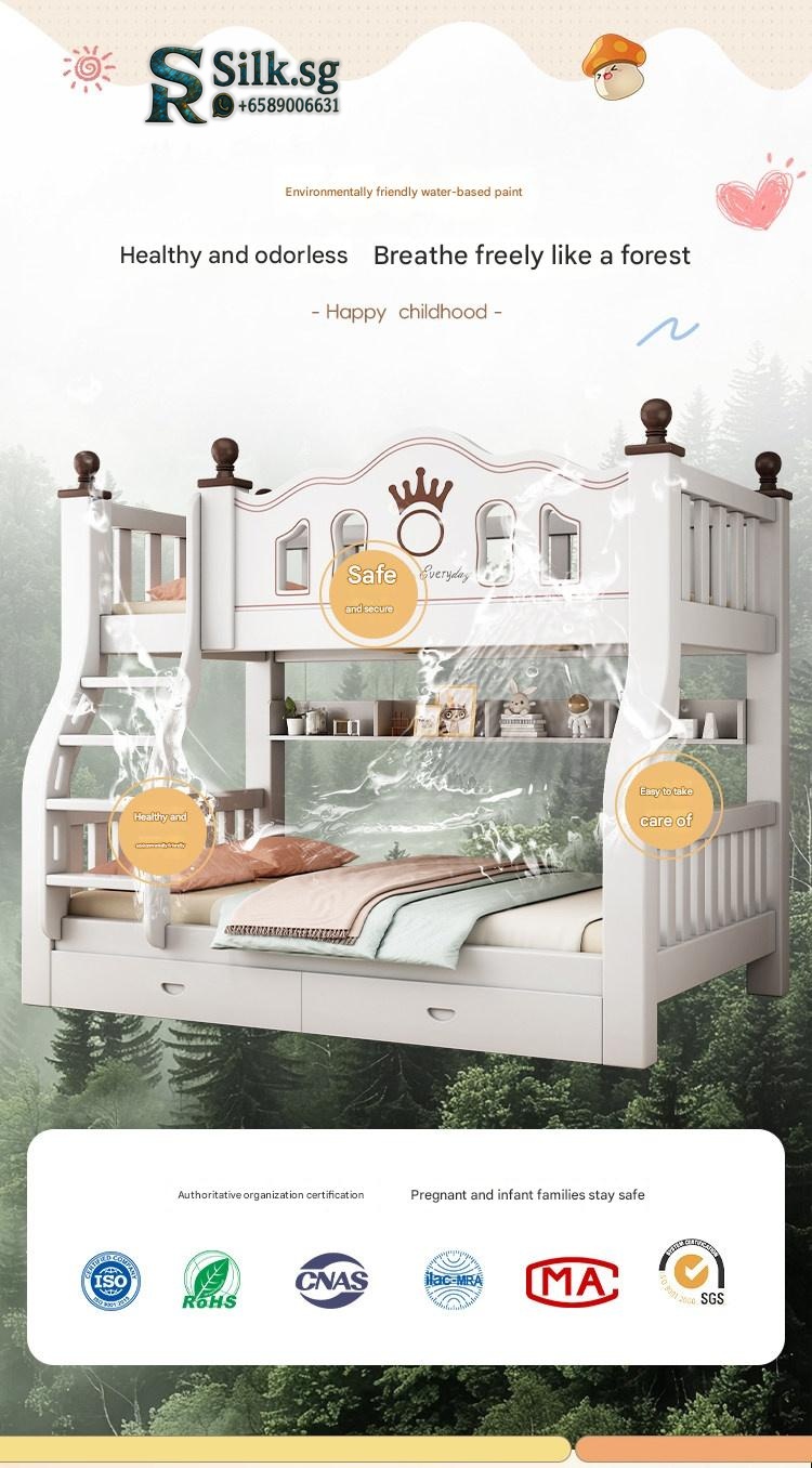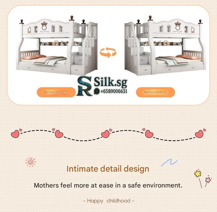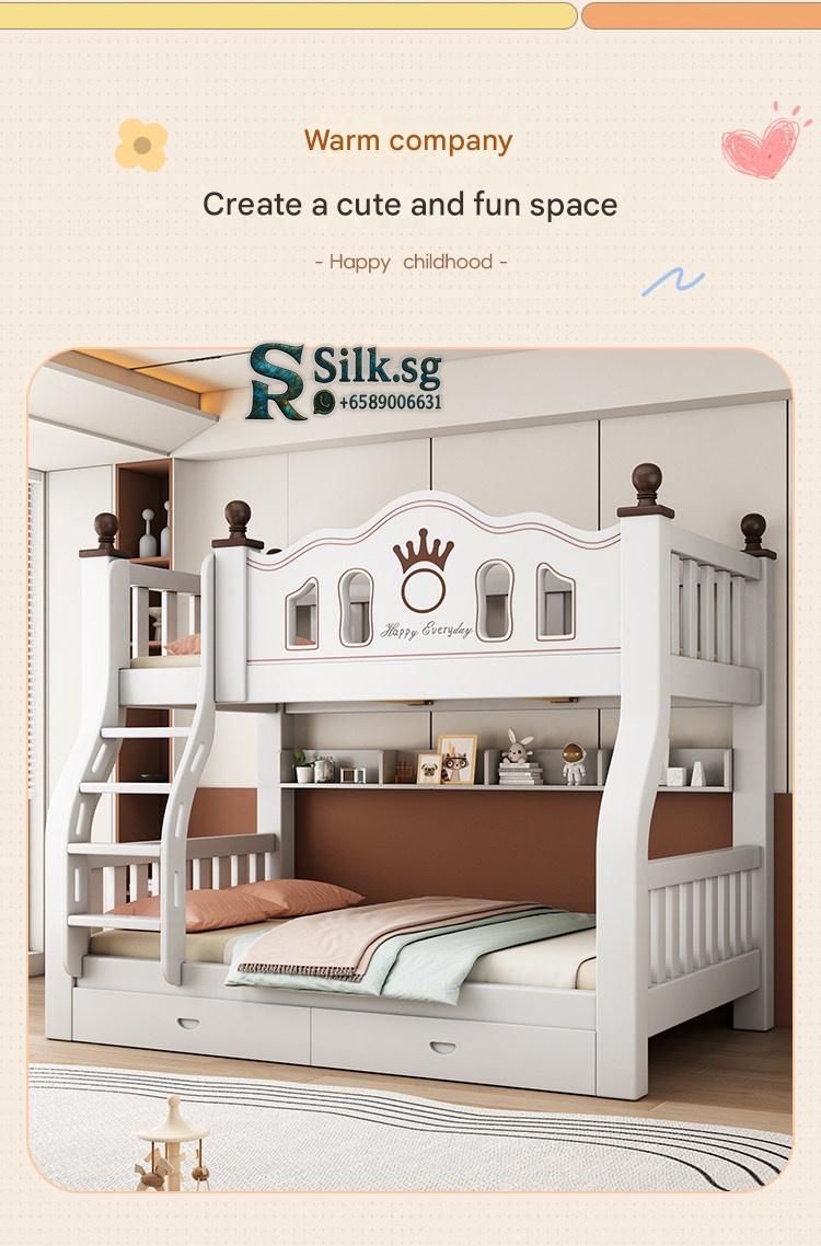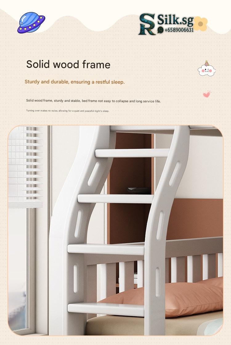 This durable solid wood bunk bed offers safety and versatile storage for growing families. Perfect for space-saving needs and fostering independence, its eco-friendly finish and sturdy design ensure quality and peace of mind. Create a cozy, functional space your kids will love.