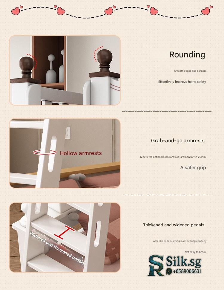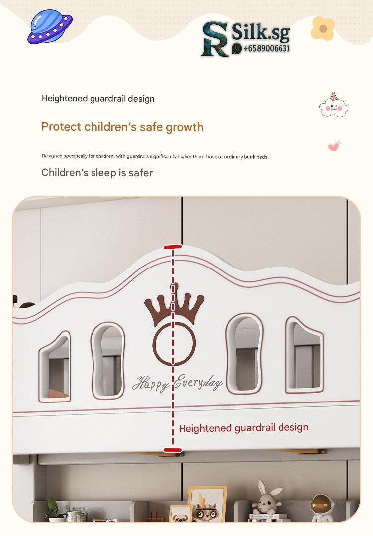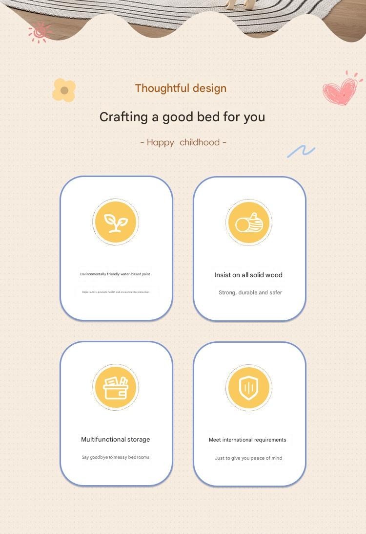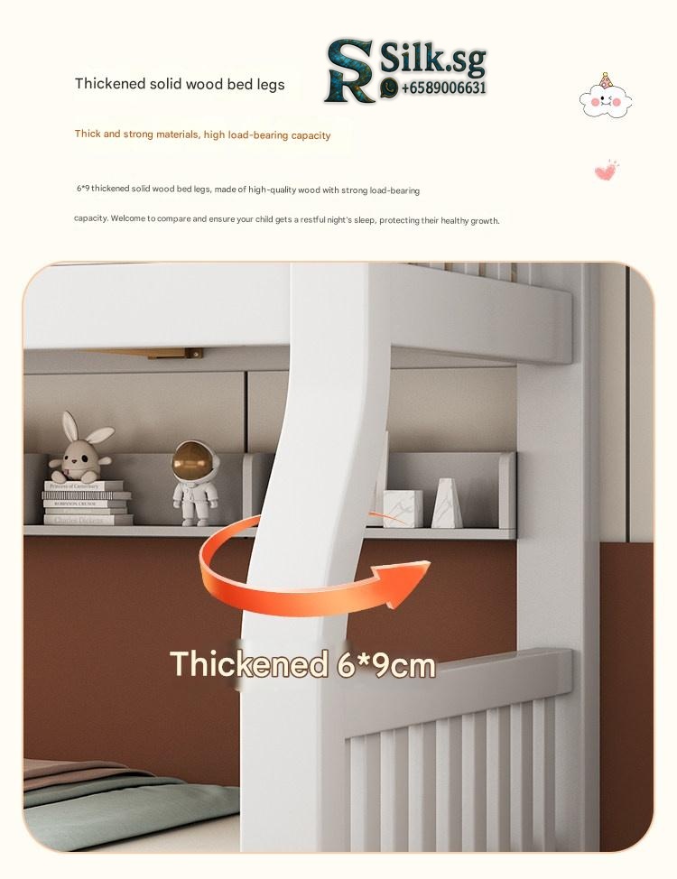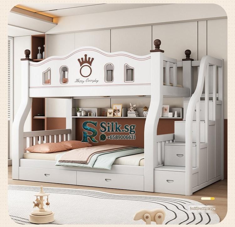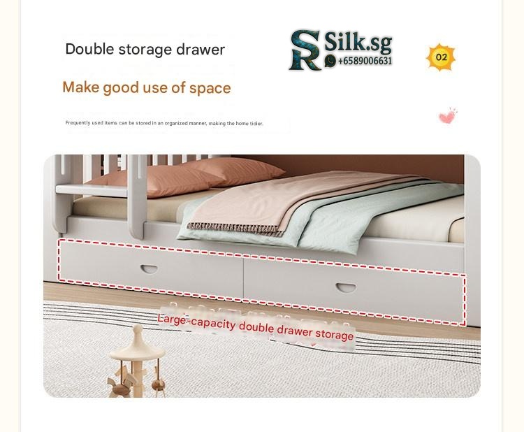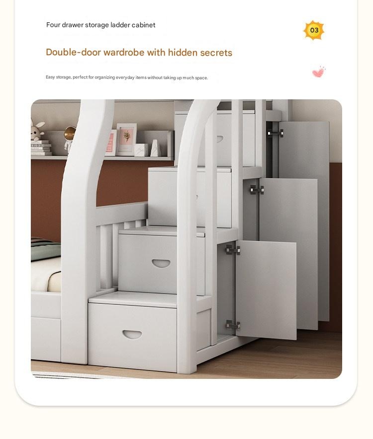 This durable solid wood bunk bed offers safety and versatile storage for growing families. Perfect for space-saving needs and fostering independence, its eco-friendly finish and sturdy design ensure quality and peace of mind. Create a cozy, functional space your kids will love.
