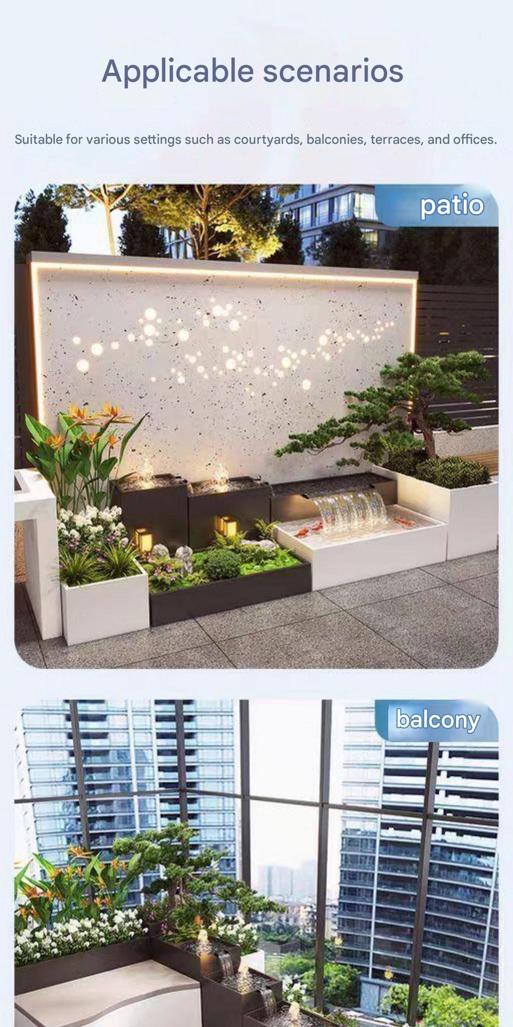 Transform your space with this stunning balcony fish tank flower box, combining sleek metal and acrylic for a modern touch. Perfect for creating a calming oasis in your courtyard or study, it offers easy circulation and maintenance—bringing nature’s serenity right to your home.
