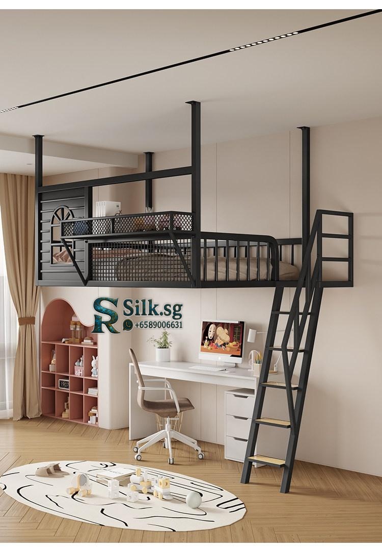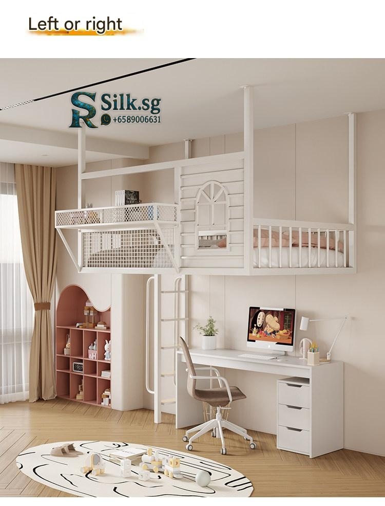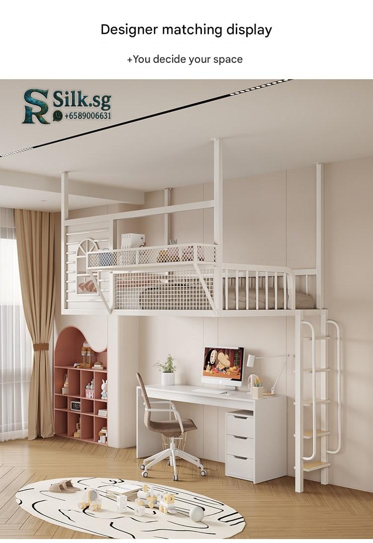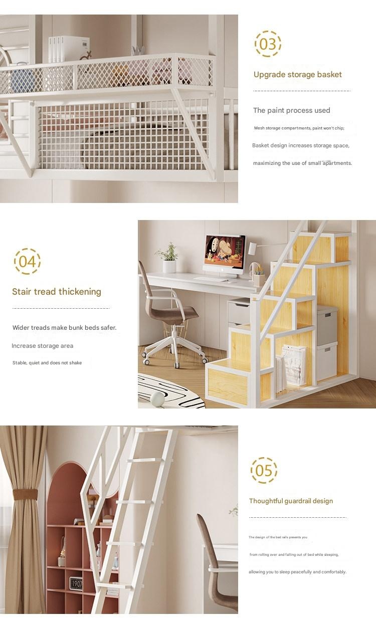 Create efficient space with this Nordic iron loft bed featuring a cozy upper sleeping area, integrated storage, and a playful cartoon design. Perfect for kids rooms or shared spaces, its durable metal frame ensures safety and style. Make bedtime fun and clutter-free today.